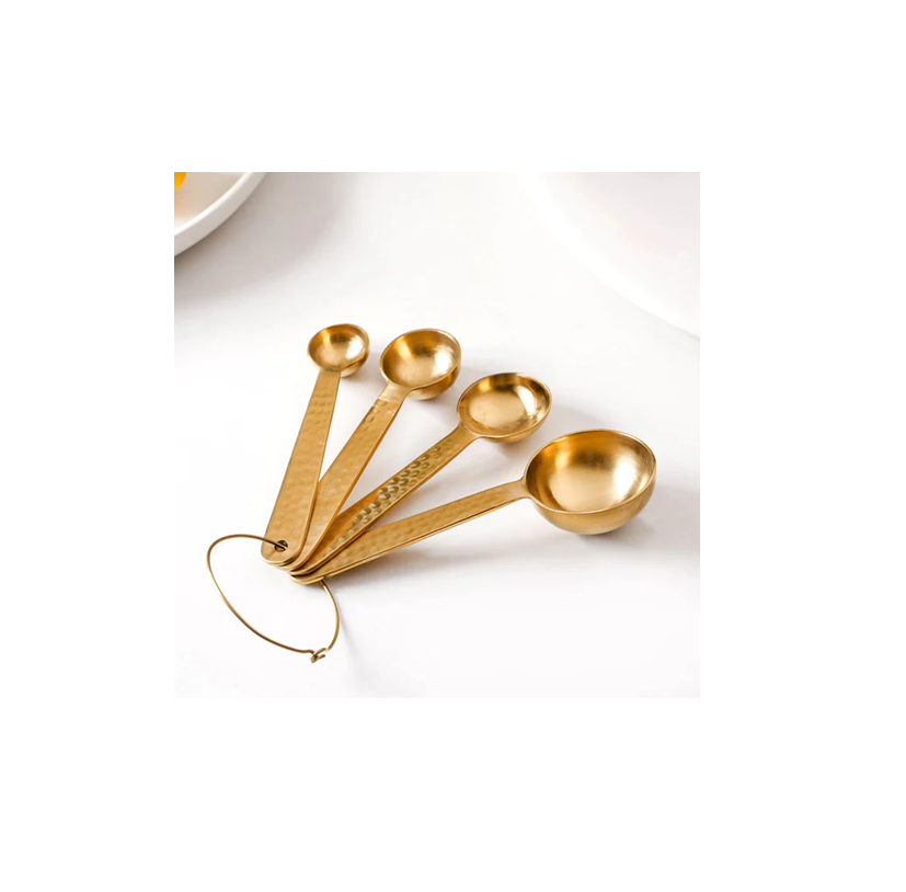 ชุดช้อนตวงทองเหลือง4ชิ้นสำหรับตวงแบบแห้งและแบบเหลวสำหรับเครื่องครัวและร้านอาหาร