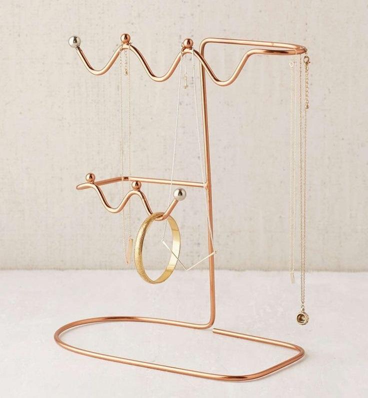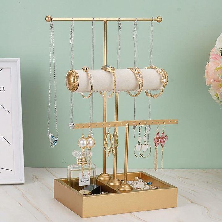 ที่ตั้งเครื่องประดับโลหะทองเหลืองสีทองและมันวาวสำหรับจัดแสดงเครื่องประดับ
