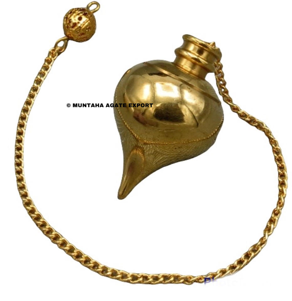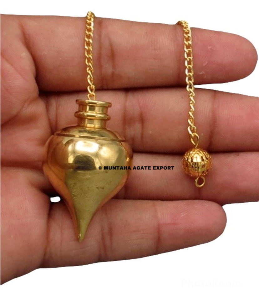 ลูกตุ้มโลหะทองเหลือง-ดีไซน์ 19 ของขวัญทางจิตวิญญาณ หินบำบัดเรกิ ทำนายดวงชะตา หินมุนธาอาเกต