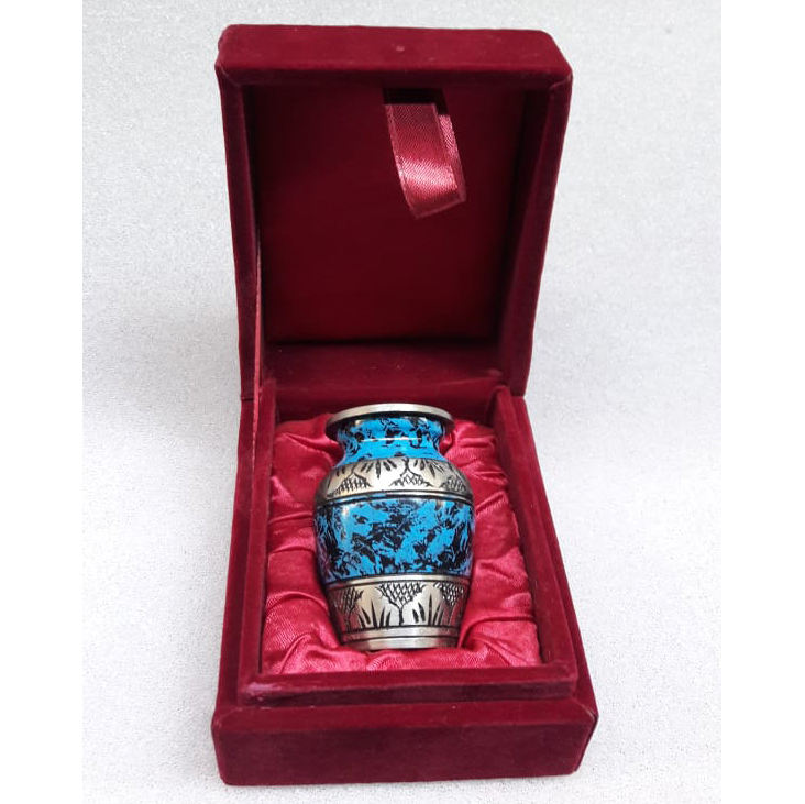 ของชำร่วยงานฌาปนกิจศพขนาดเล็กทำจากทองเหลืองของชำร่วยสำหรับขี้เถ้าของมนุษย์โกศขนาดเล็กสีฟ้า