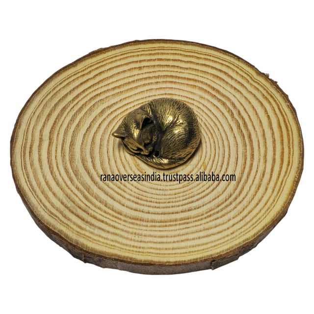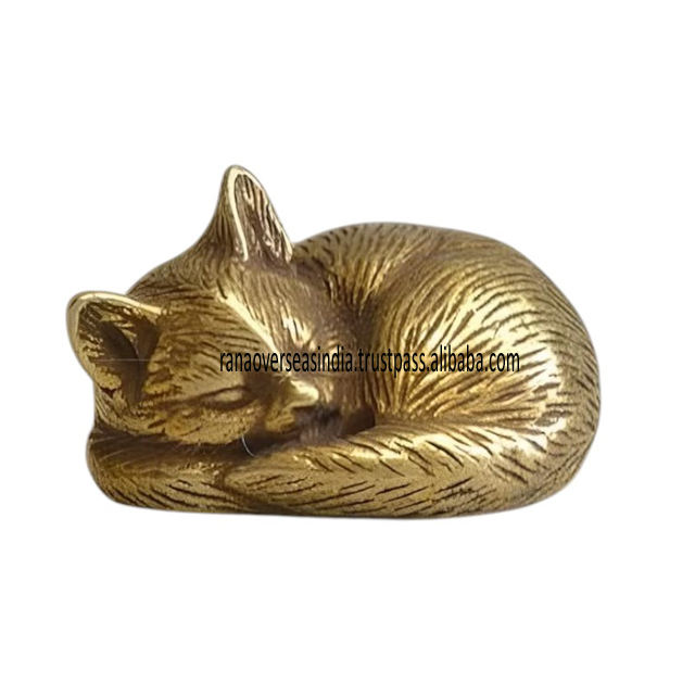 รูปปั้นแมวนอนหลับทองเหลืองสไตล์โมเดิร์น งานแฮนด์เมดรักษ์โลก เหมาะสำหรับตกแต่งบ้าน สำนักงาน โต๊ะทำงาน หรือพื้นที่ทำสมาธิ
