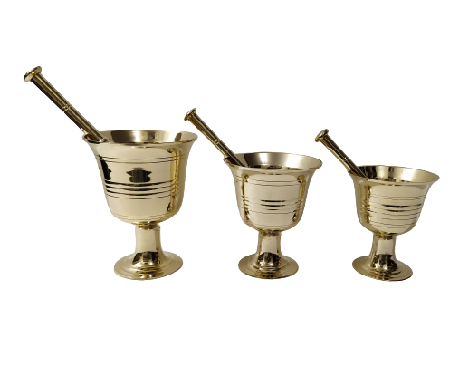ครกทองเหลืองและสากสมุนไพรและเครื่องเทศแบบดั้งเดิม