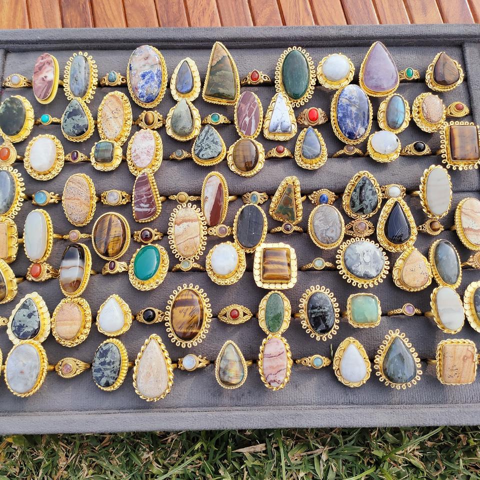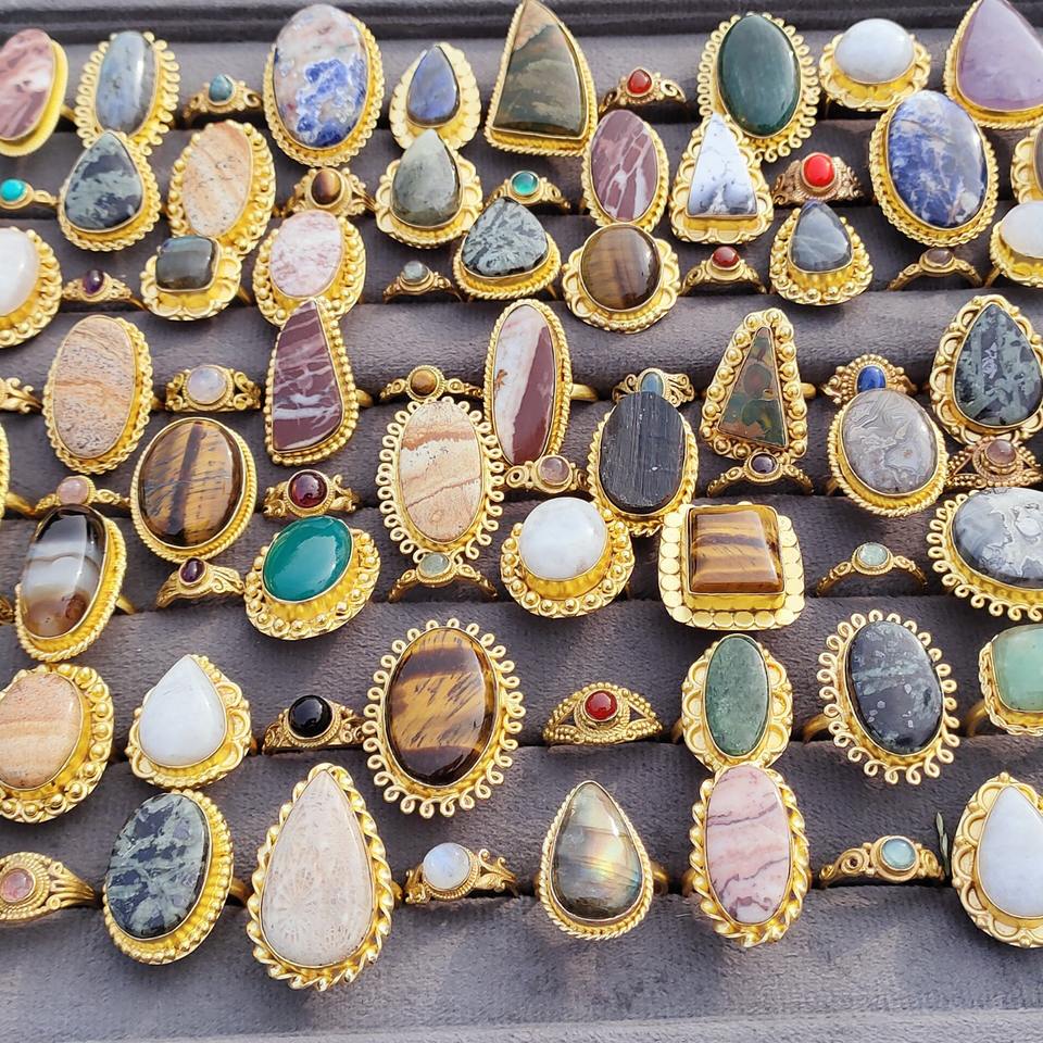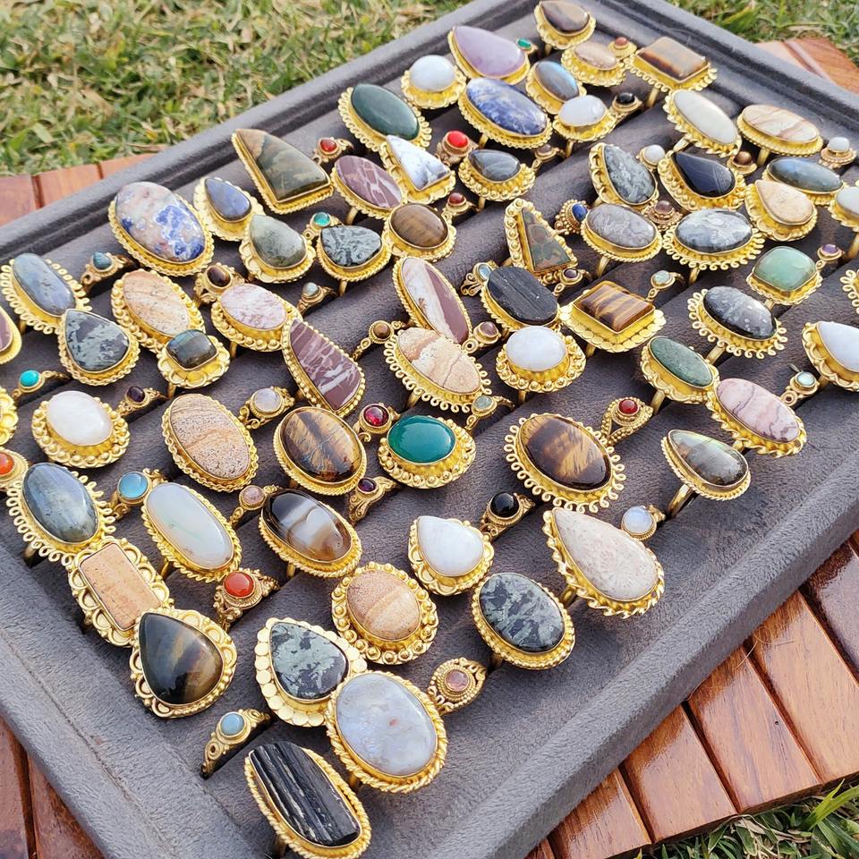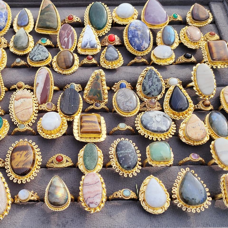 แหวนทองเหลืองประดับอัญมณีธรรมชาติ สำหรับโยคะ เรกิ จิตวิญญาณ และแฟชั่น ราคาไม่แพงจากอินเดีย
