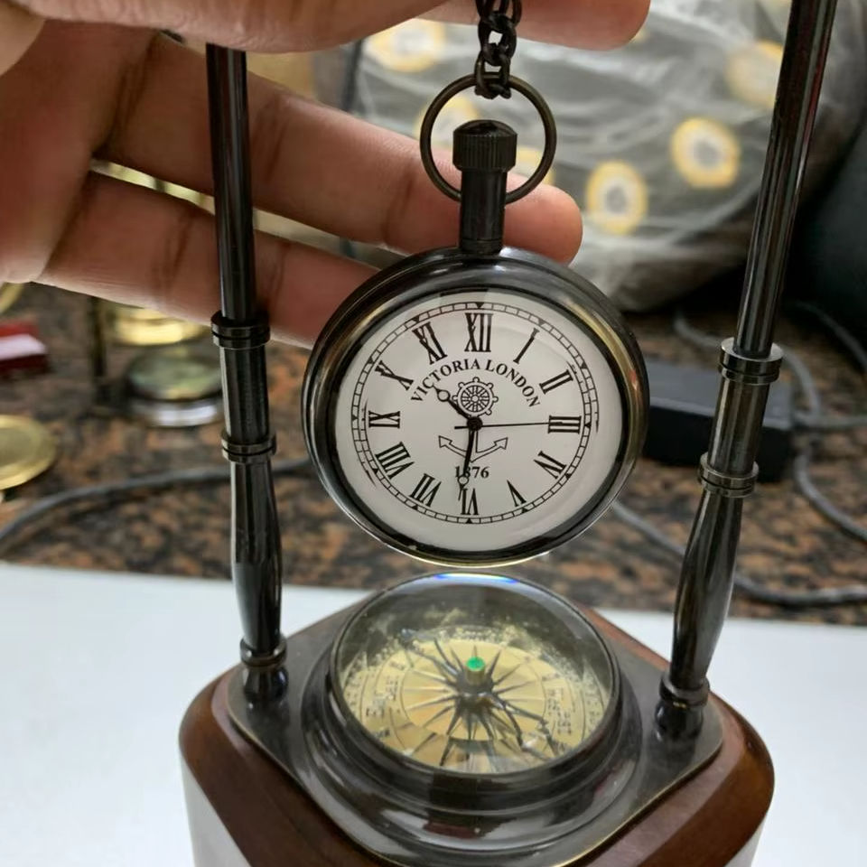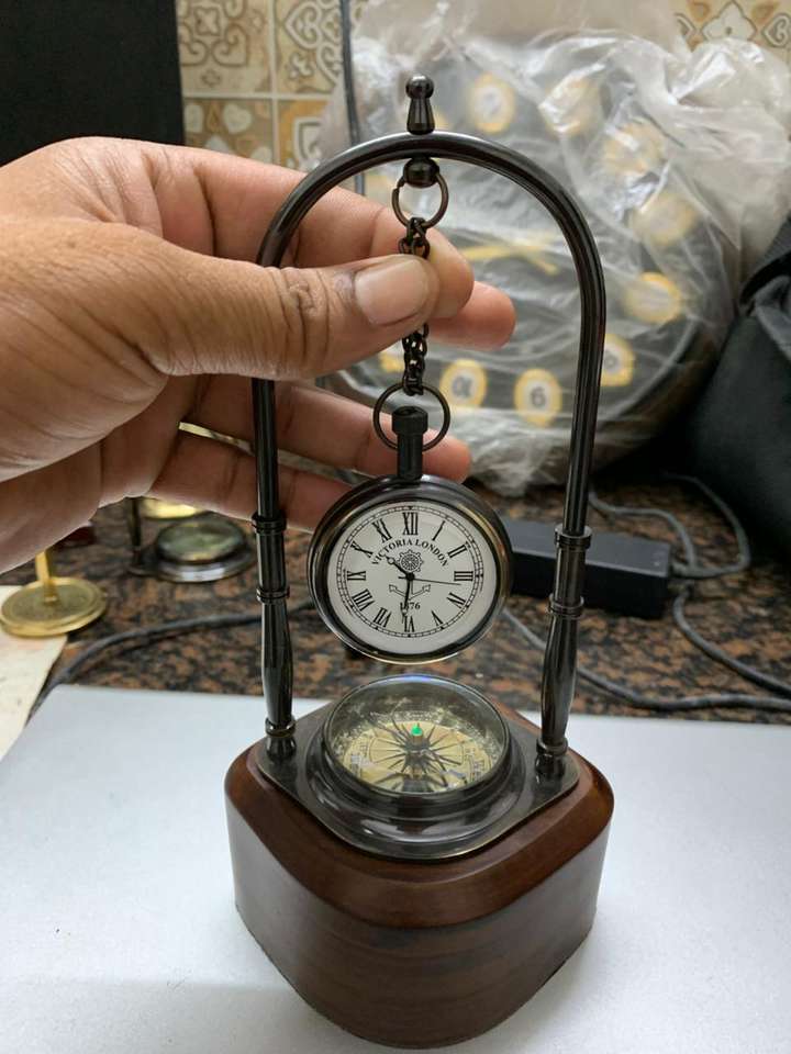 นาฬิกาทะเลทองเหลืองจับเวลาเข็มทิศโบราณโบราณงานฝีมือโลหะขัดเงาสไตล์วินเทจเหมาะสำหรับนักเดินเรือและใช้ในบ้าน