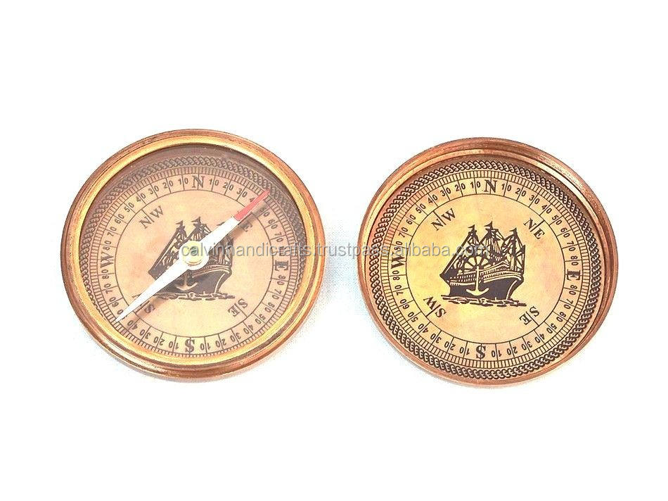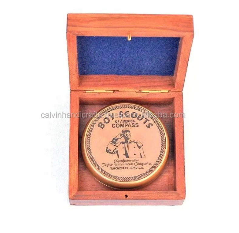 เข็มทิศแม่เหล็กทองเหลืองขนาด 2.5 นิ้ว สำหรับใช้งานกลางแจ้ง พร้อมกล่องไม้พะยูง ดีไซน์แบบโบราณพกพา