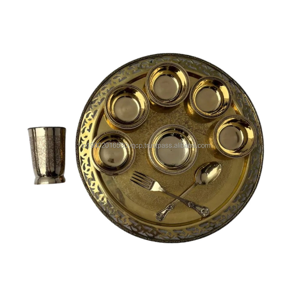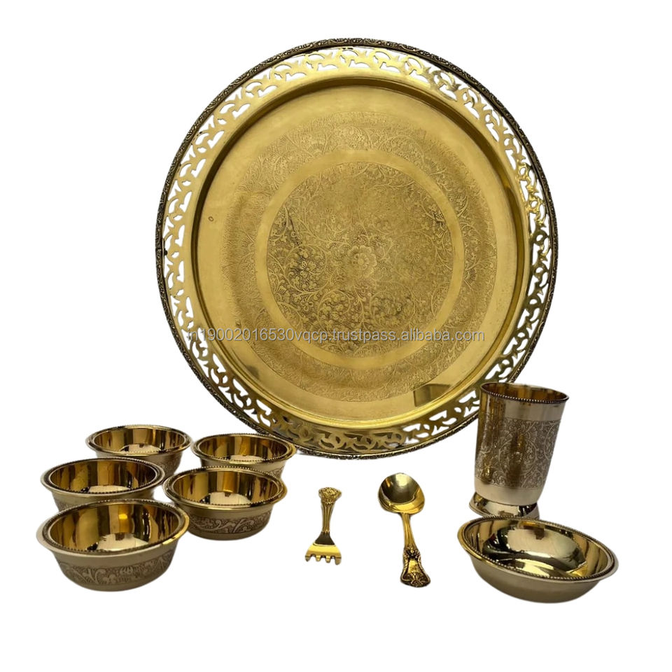 ชุดอาหารค่ำทองเหลืองลายคลาสสิคแบบราชวงศ์ 10 ชิ้น ทรงกลม สำหรับใช้ในบ้านและร้านอาหาร สไตล์อินเดีย