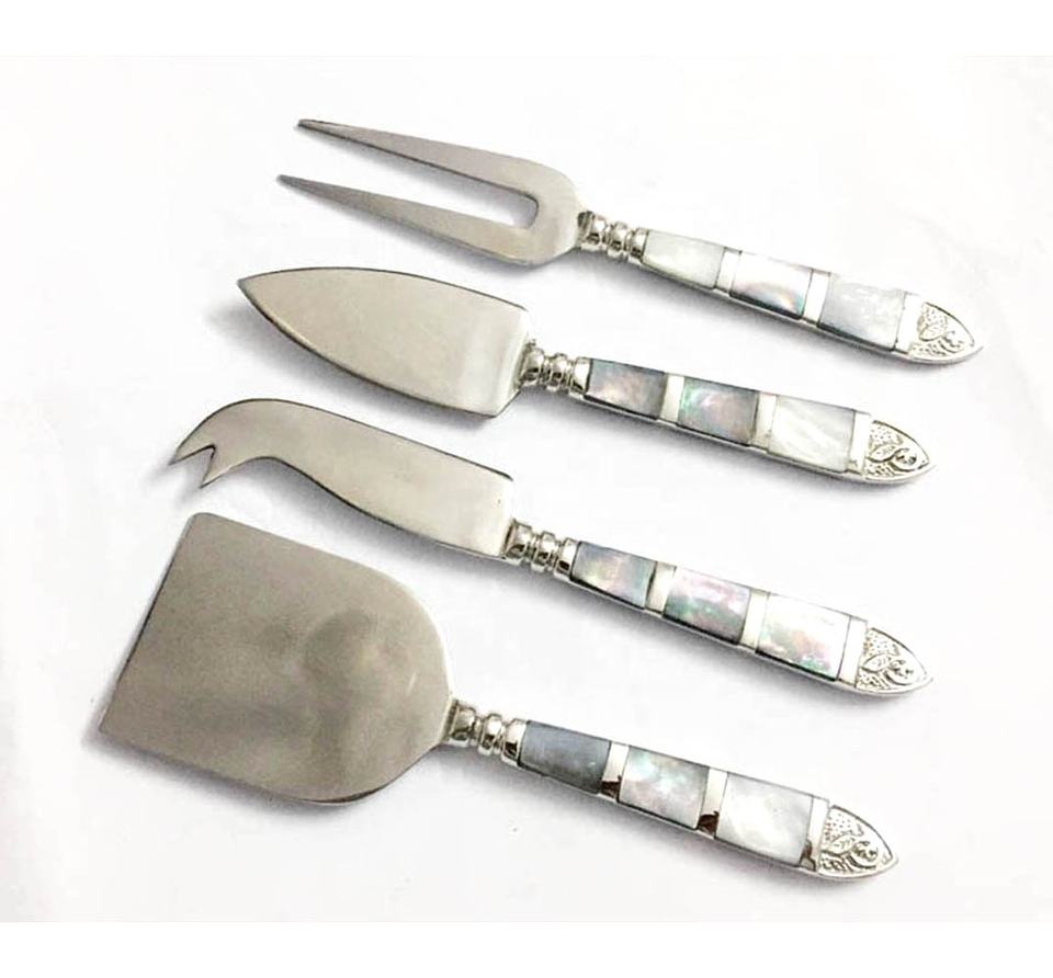 ชุดเครื่องมือส้อมและมีดชีสสเตนเลสสตีล,ด้ามนูนทองเหลืองทำจากแผ่นนิกเกิล