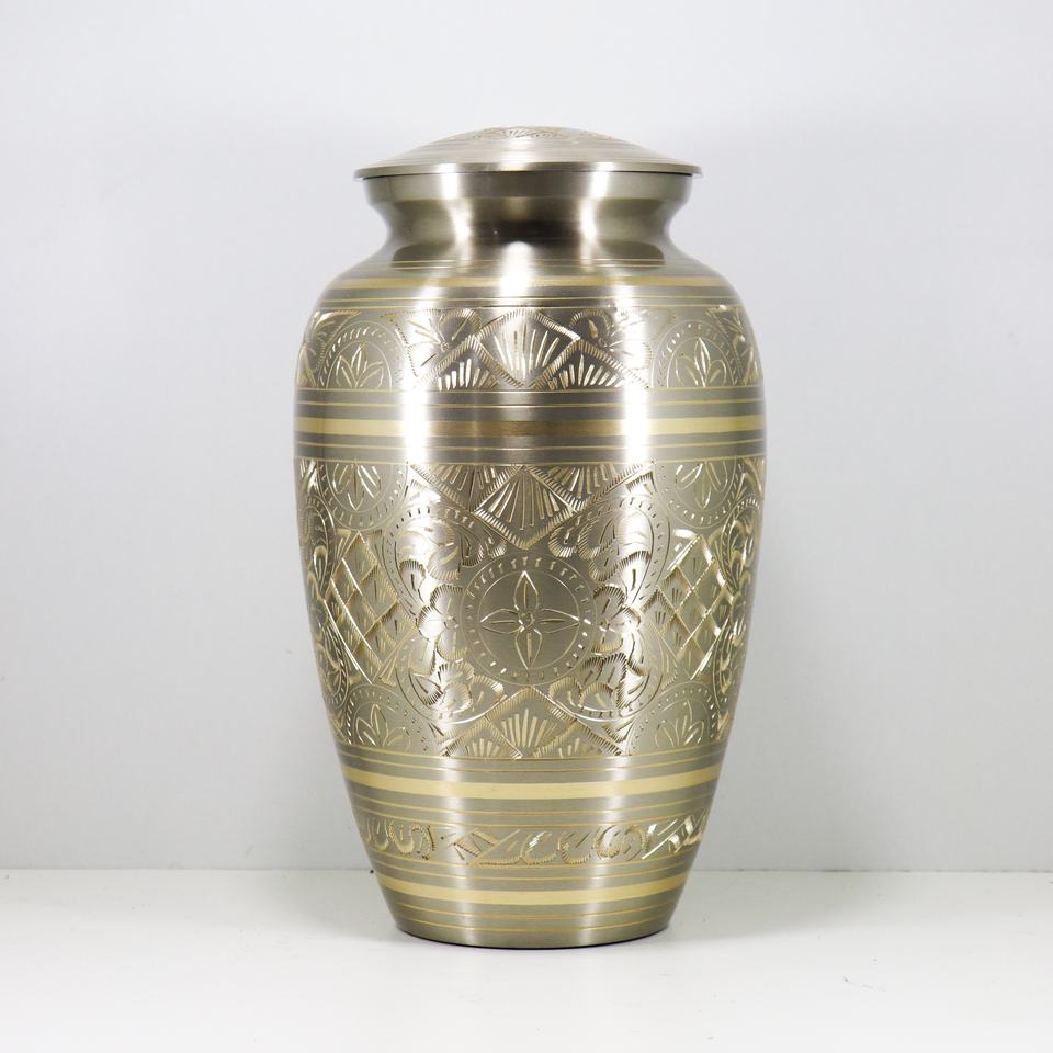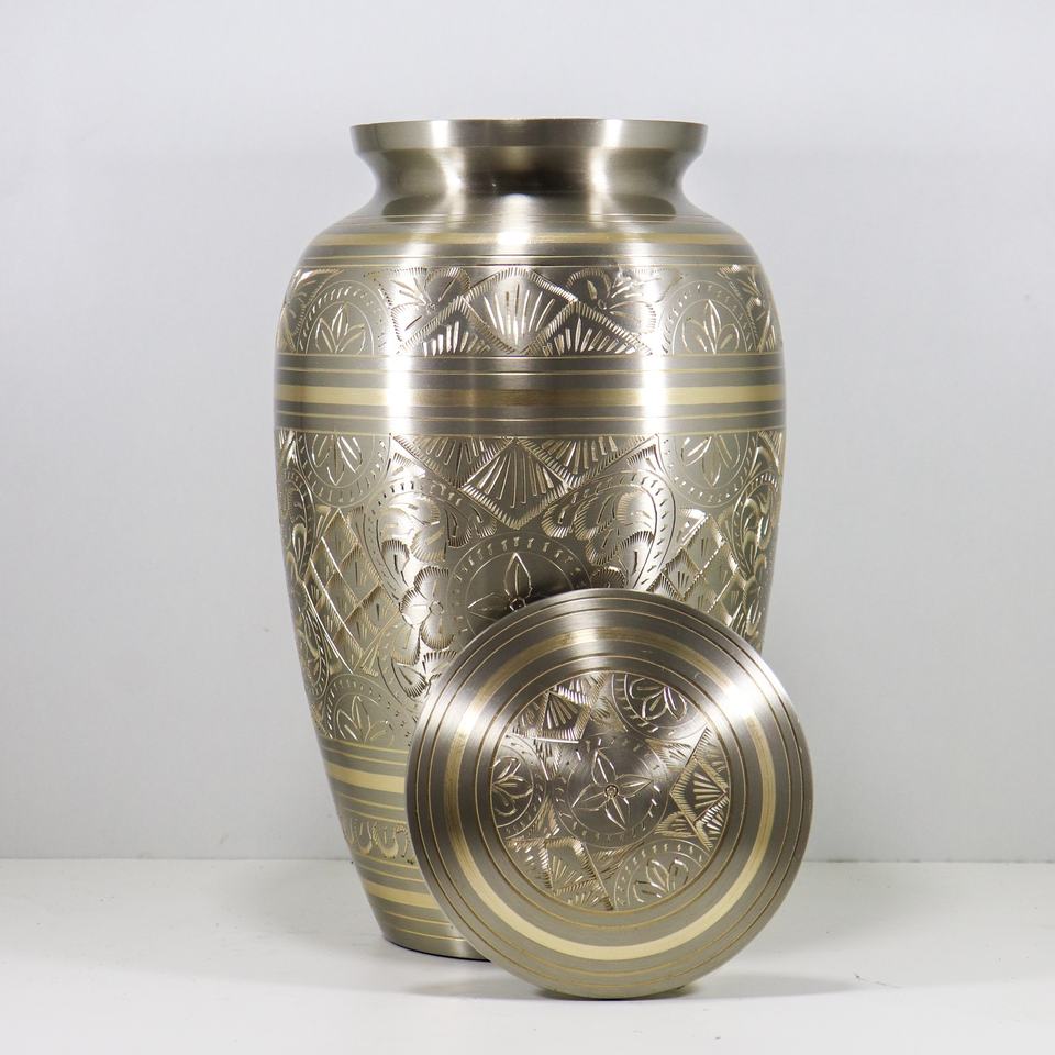 โกศบรรจุอัฐิสำหรับผู้ใหญ่ สไตล์อเมริกัน ทำจากทองเหลืองและดีบุก แกะสลักลาย เป็นมิตรกับสิ่งแวดล้อม