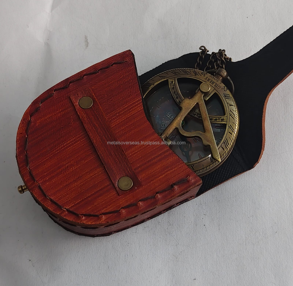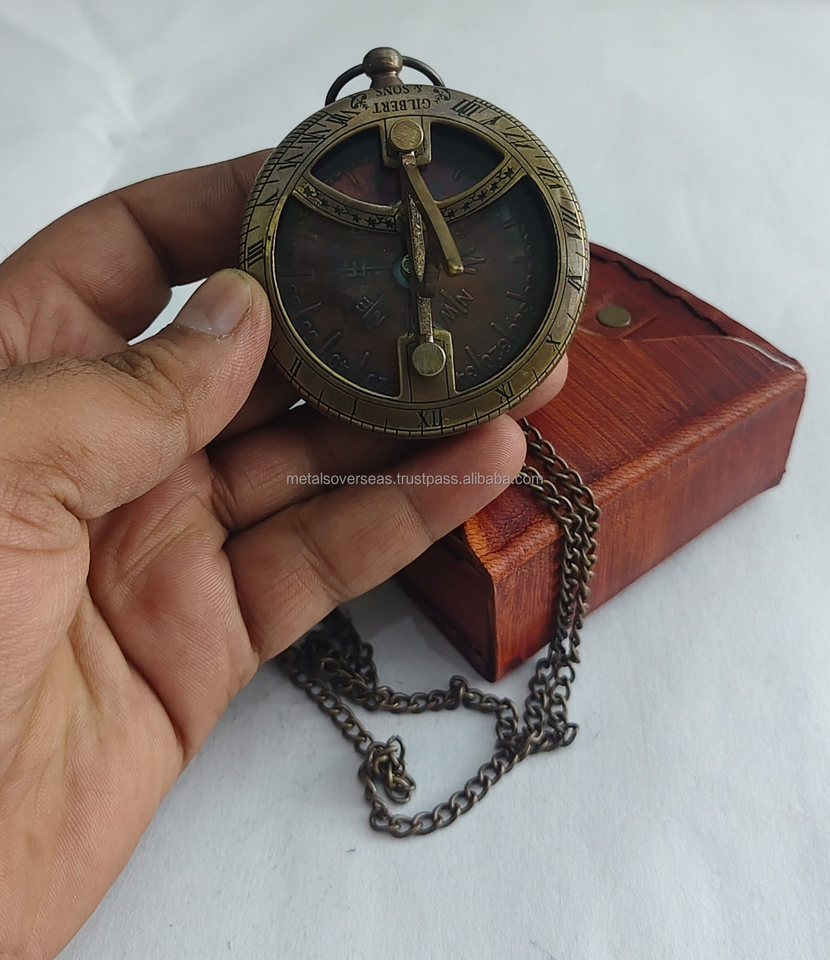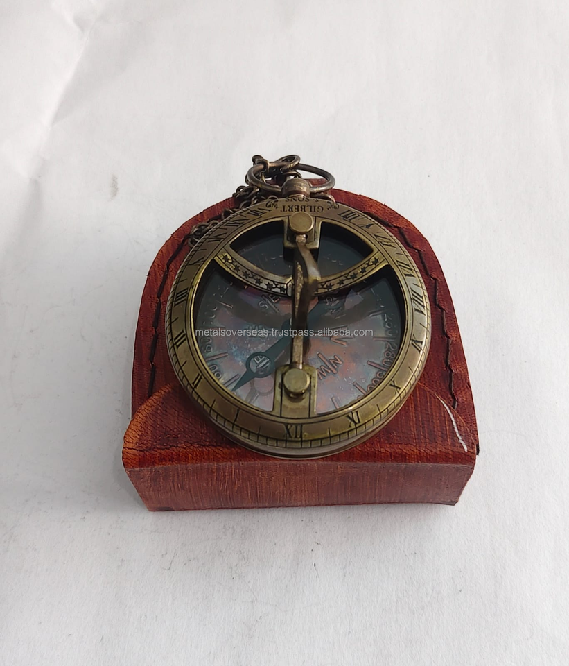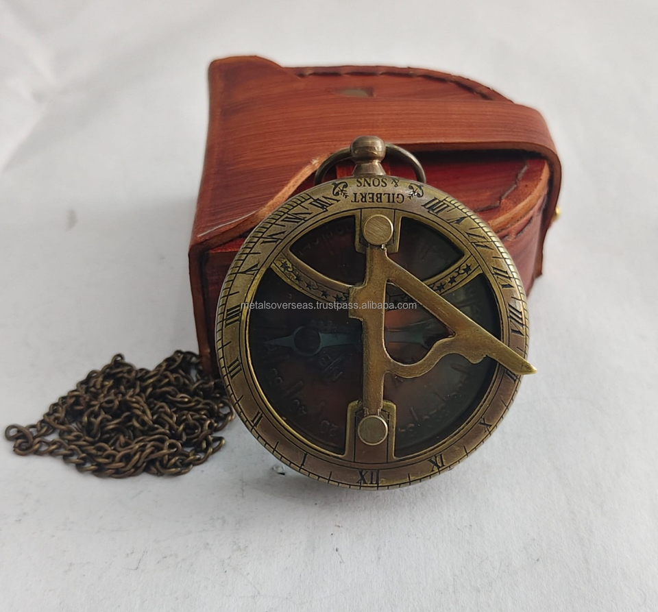เข็มทิศทองเหลืองแบบพกพาพร้อมโซ่ แบบโบราณ สำหรับการเดินเรือ หน้าปัดแบบโรมัน
