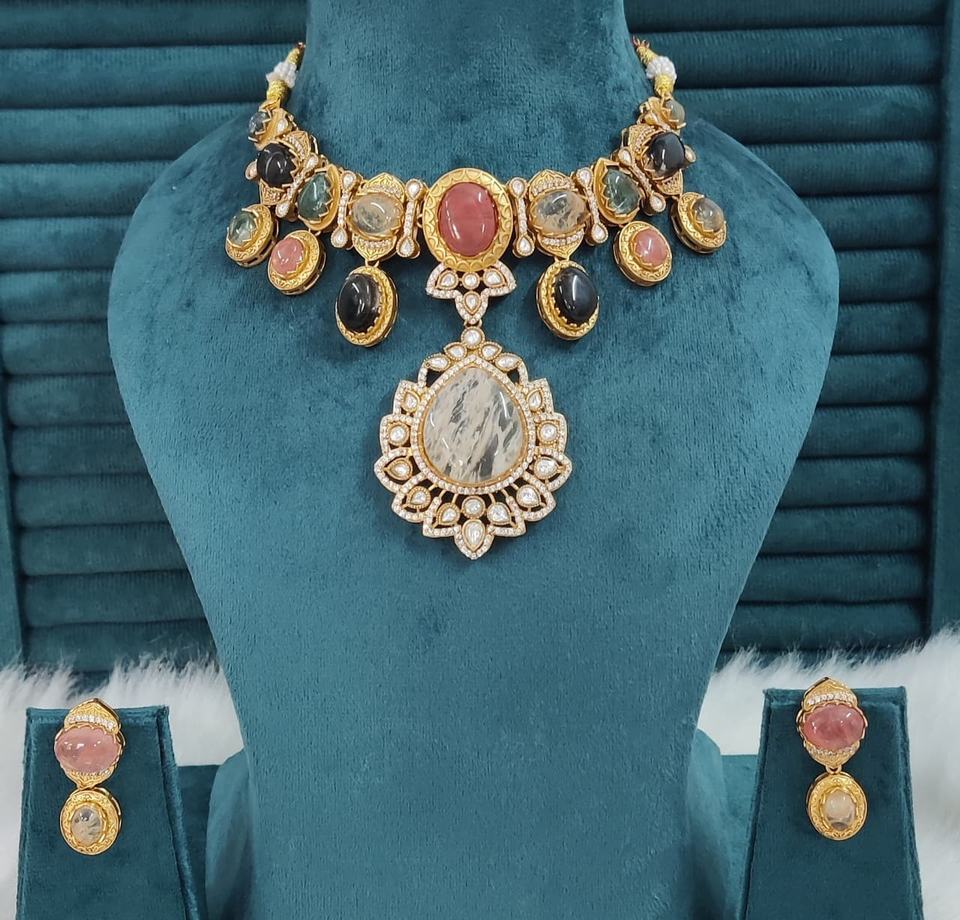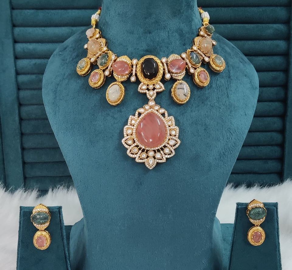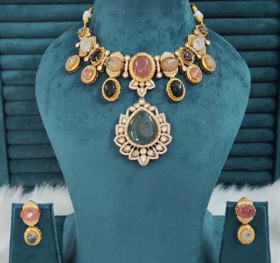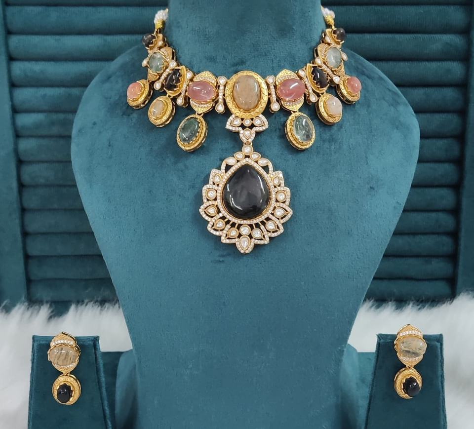 ชุดสร้อยคอทองเหลืองสไตล์โพลกีและซาบายาซาชี เหมาะสำหรับงานแต่งงาน งานปาร์ตี้ สร้อยคอหรูหราพร้อมต่างหูสวยงาม