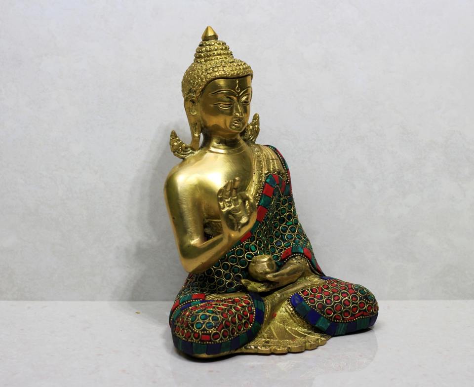 แหวนทองเหลืองประดับหิน ตกแต่งรูปพระพุทธรูป สำหรับวัตถุประสงค์ทางศาสนาและวัฒนธรรม พร้อมสไตล์การประดับแบบมงคล