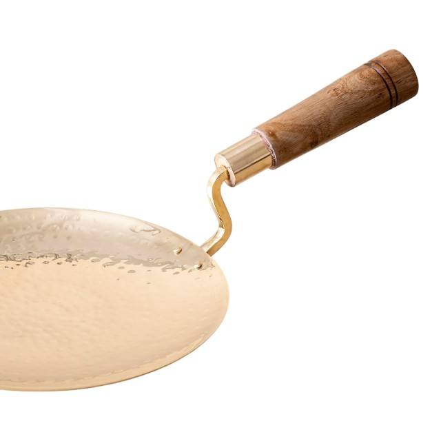 กระทะทองเหลืองสำหรับทำโรตี ใช้กับเตาไม้สำหรับทำอาหารประจำวัน; ดีไซน์ก้นหนาช่วยกระจายความร้อน พร้อมเคลือบกันสนิม ใช้ได้กับเตาแก๊สและเตาแม่เหล็กไฟฟ้า