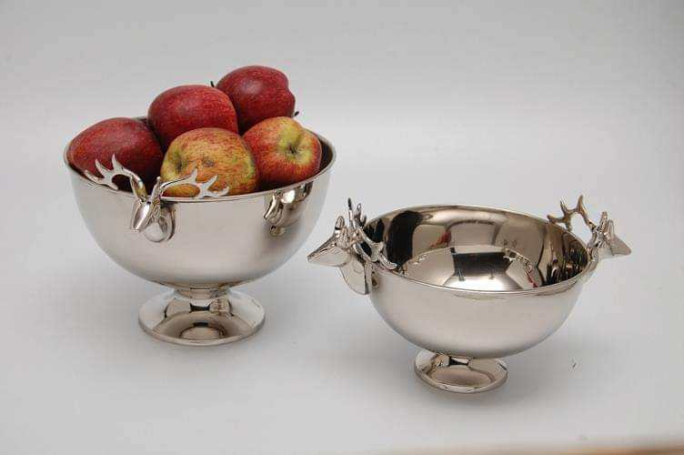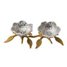 ชุดชามผลไม้ทองเหลืองกลม2ชิ้นสำหรับบ้านโรงแรมร้านอาหารชามอาหารสีเงินและขนมขบเคี้ยวชามเสิร์ฟอุปกรณ์สำหรับโรงแรม