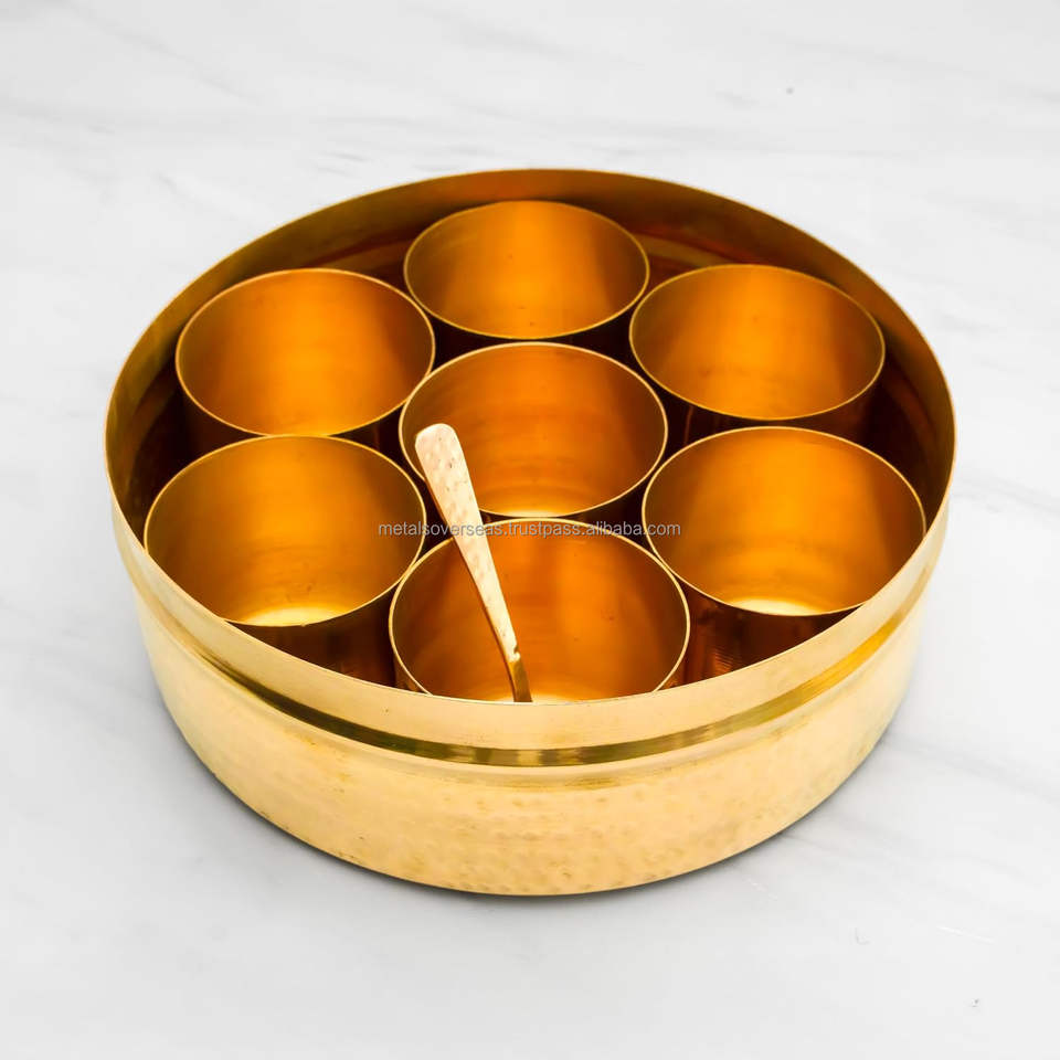 ภาชนะเก็บเครื่องเทศทรงกลมทำจากทองเหลือง ขัดเงา ทนทาน ใช้กับเตาอบได้ ล้างมือเท่านั้น ของตกแต่งแบบดั้งเดิม