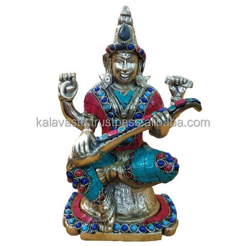 รูปปั้น Sarswati ทองเหลืองงานฝังหิน,ทำด้วยมือพระพุทธรูปในหินสำหรับตกแต่งบ้าน