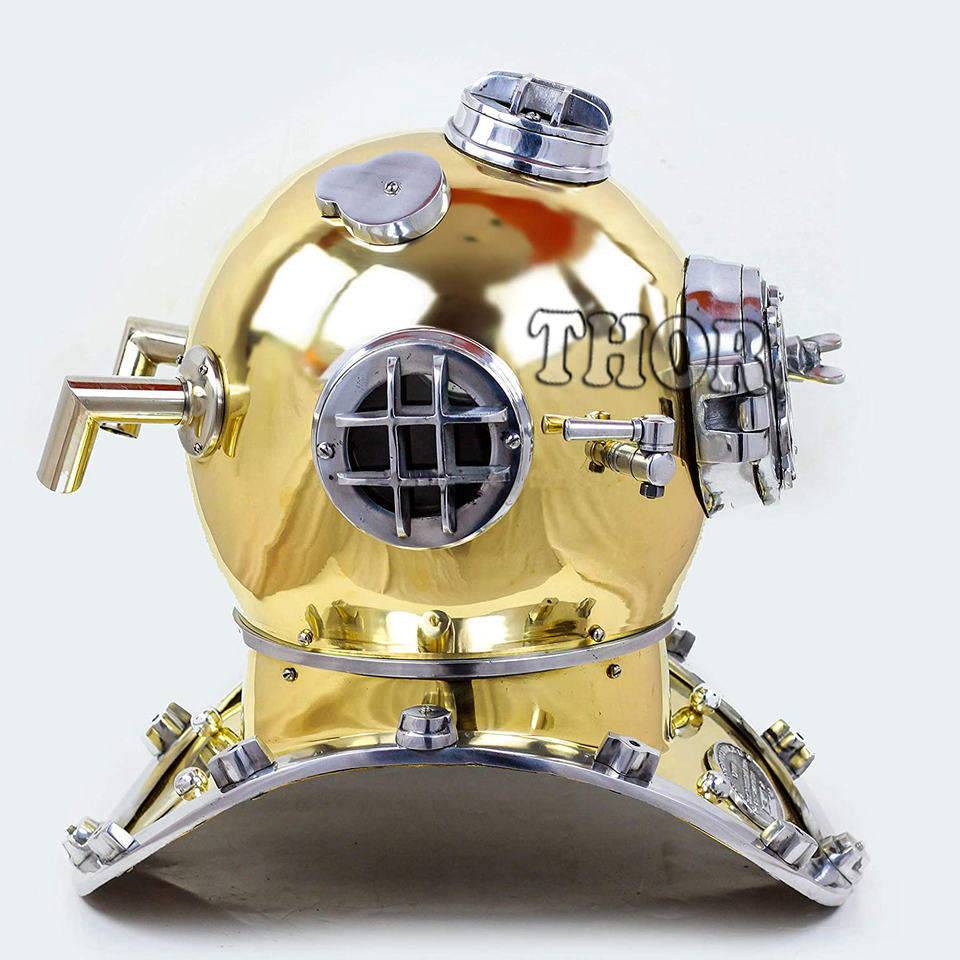 หมวกกันน็อคดำน้ำสกูบ้าทองเหลือง18นิ้วแนววินเทจแบบโบราณสำหรับการดำน้ำลึกและการผจญภัยในการดำน้ำลึก