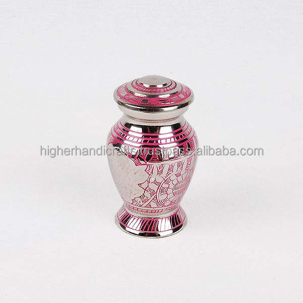 โกศใส่เถ้ากระดูกสำหรับใส่เถ้ากระดูกพร้อมกล่องรูปหัวใจพิเศษสีชมพูและเงินทำจากทองเหลือง