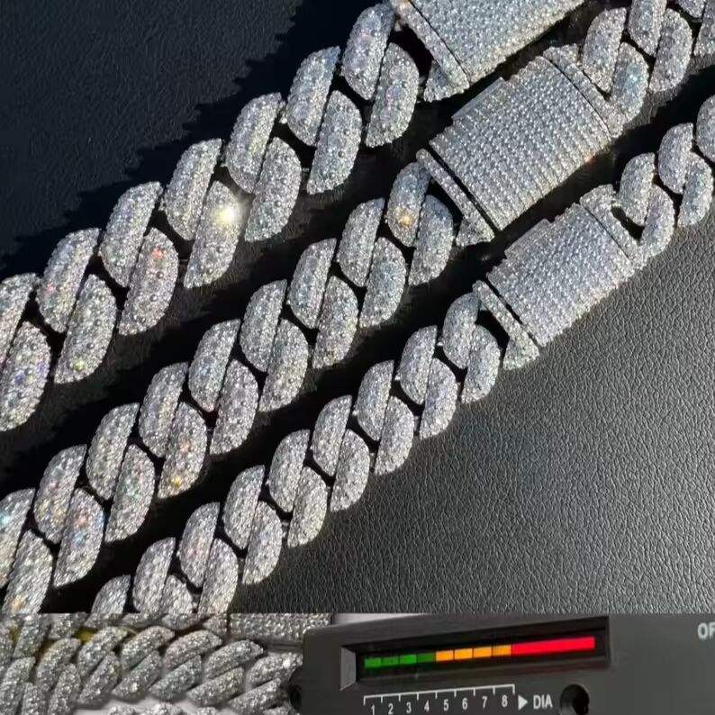 สร้อยคอแบบ Cuban Link ชุบเงินทองเหลือง ขนาด 10 มม. 12 มม. 14 มม. ประดับเพชรซิคอนแบบ Micro Pave และไข่มุกน้ำจืด สไตล์ฮิปฮอปทันสมัยสำหรับทุกเพศ