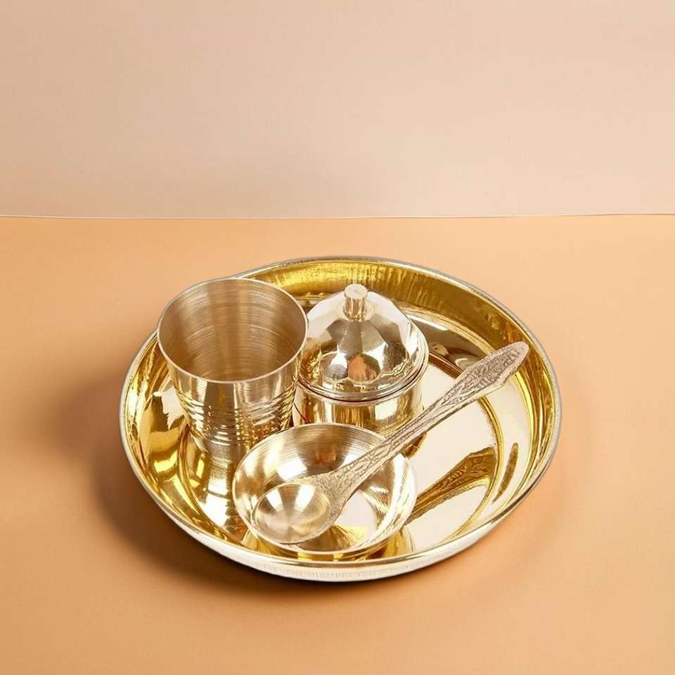 Brass Small Pooja Bhog Thali Set (5 Pieces)