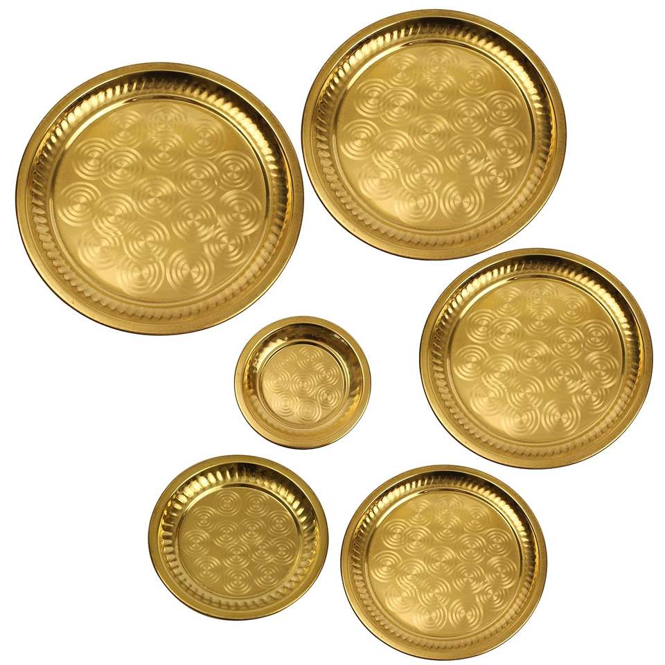 Nakshi แผ่นทองเหลืองบริสุทธิ์ลายนูน Aarti Puja nakashi thali จานส่งออกแผ่นเสียงดีไซน์หรูหรา