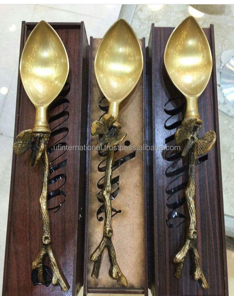 Brass Spoon Latest Design Gold Brass Spoon Handicraft Mirrored steel Gifts Packing Box High Quality 2 Piece Best Selling