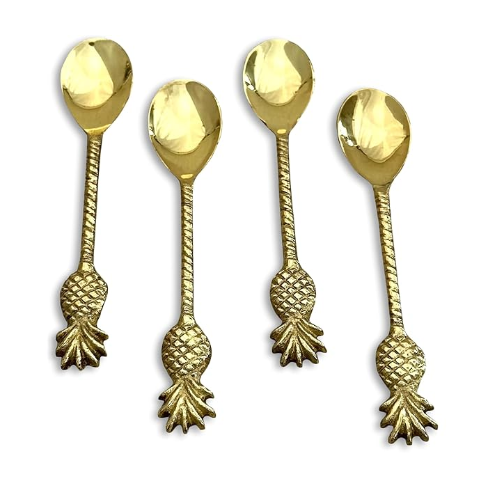 ช้อนทองเหลืองลายใบไม้และดอกไม้ ดีไซน์สวยงาม สำหรับงานเลี้ยงอาหารค่ำ ช้อนเสิร์ฟ ช้อนส้อม ราคาดีที่สุด