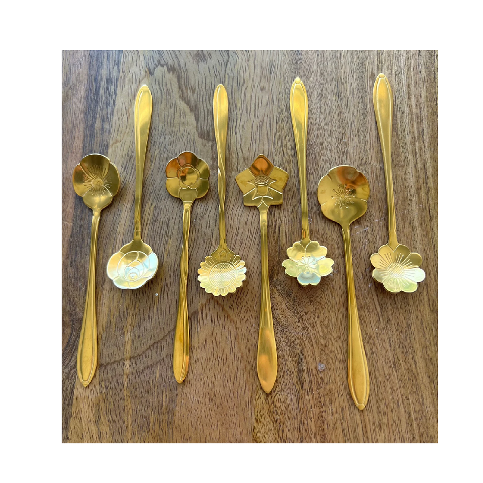 ช้อนทองเหลืองแบบมีวงแหวนรูปดอกไม้หลายแบบสำหรับใช้ทำด้วยมือในร้านอาหาร