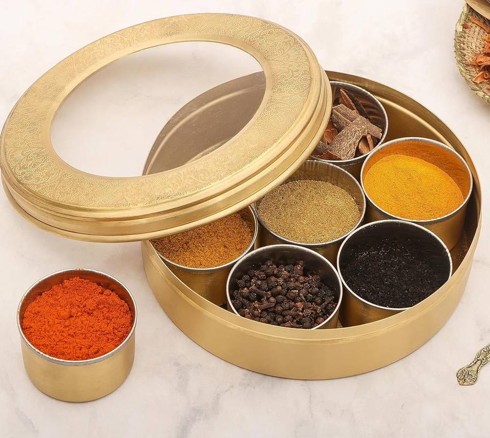 กล่องใส่เครื่องเทศทองเหลืองทรงสี่เหลี่ยมแบบด้าน/กล่องใส่เครื่องเทศ นำกล่องใส่เครื่องเทศทรงสี่เหลี่ยมทองเหลืองแบบด้านมาใช้ในบ้าน กล่องใส่เครื่องเทศทรงโลกทองเหลืองแบบด้าน