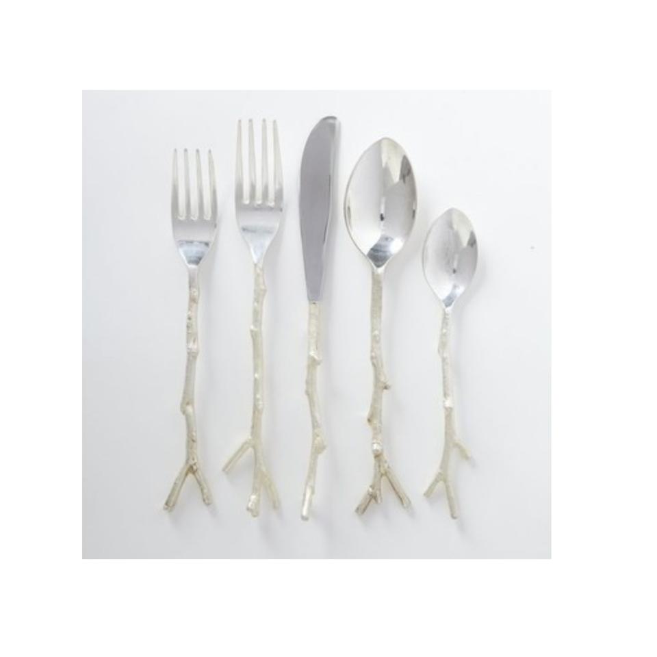 ชุดมีดทองเหลืองและสแตนเลส5ชิ้นพร้อมชุบเงินสำหรับชุดเครื่องใช้บนโต๊ะอาหารดีไซน์กิ่งไม้ในร้านอาหาร