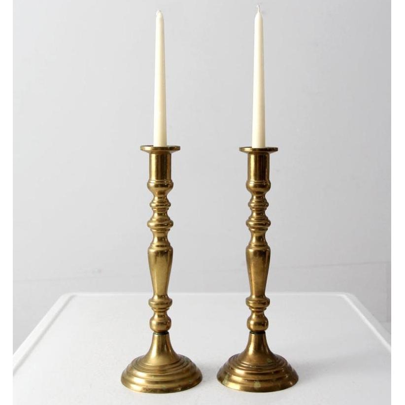 เชิงเทียนทองเหลืองเรียวคลาสสิกทำด้วยมือหรูหราไม่ซ้ำกันเชิงเทียนผู้ถืองานแต่งงานโต๊ะรับประทานอาหาร
