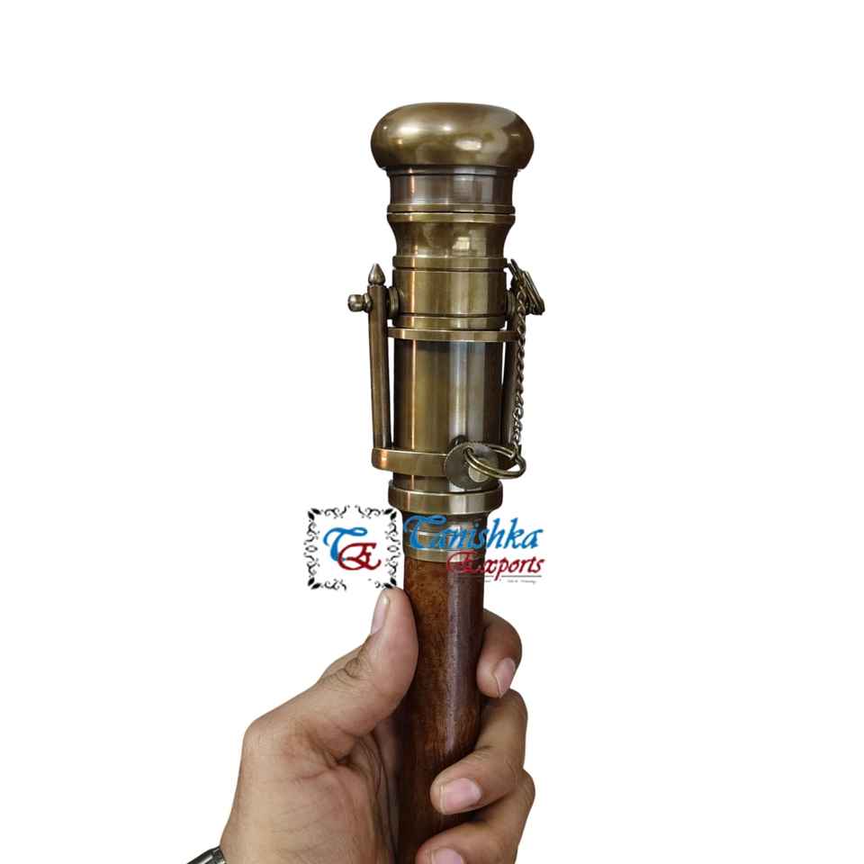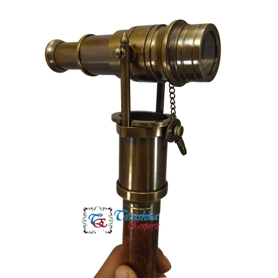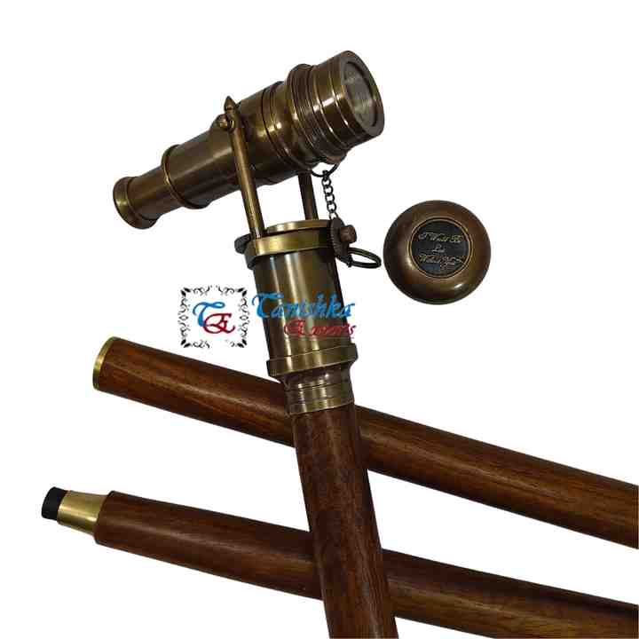 High Quality Brass Plated Antique Foldable Telescope Head Handle Brown Wooden Handmade Walking Stick Cane Hiking Gift Old Men
