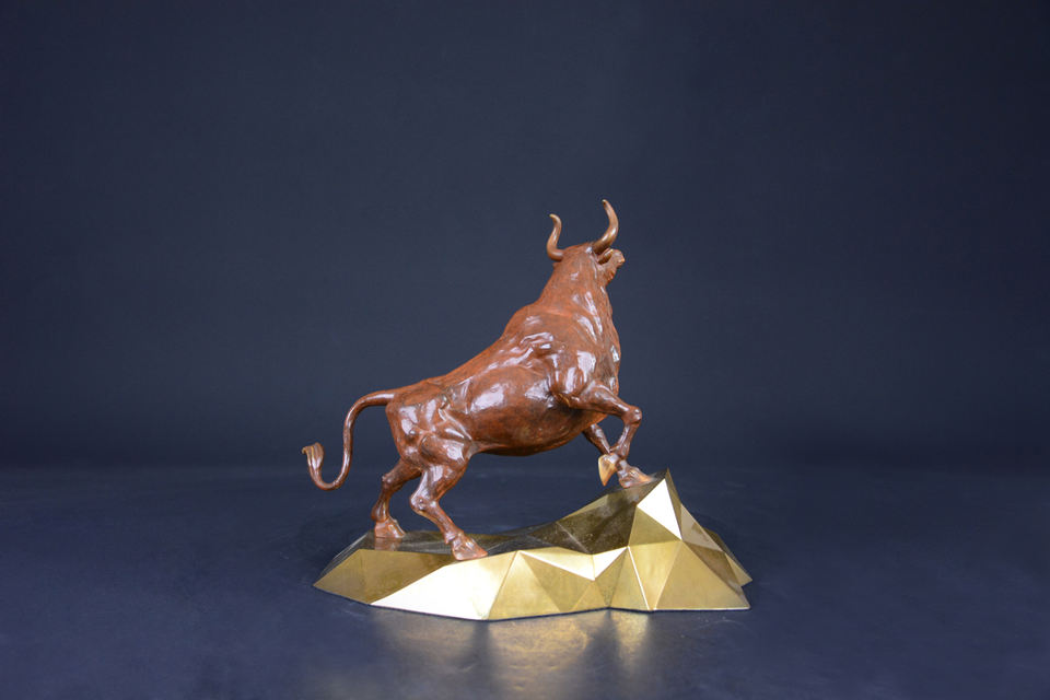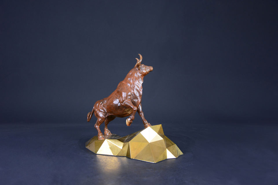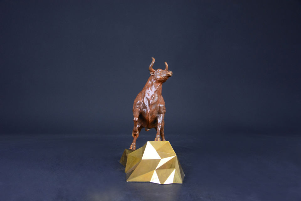 งานประติมากรรมรูปวัวทองเหลือง งานฝีมือศิลปะแบบกำหนดเอง งานประติมากรรมทองสัมฤทธิ์ทาสี ของตกแต่งสไตล์จีน ขนาดเท่าตัวจริง