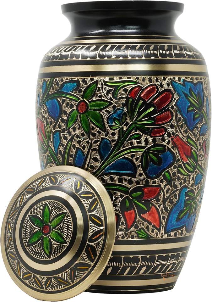 โกศทองเหลืองสำหรับขี้เถ้ามนุษย์ขนาดผู้ใหญ่งานแกะสลักศพโกศใส่ถุงกำมะหยี่