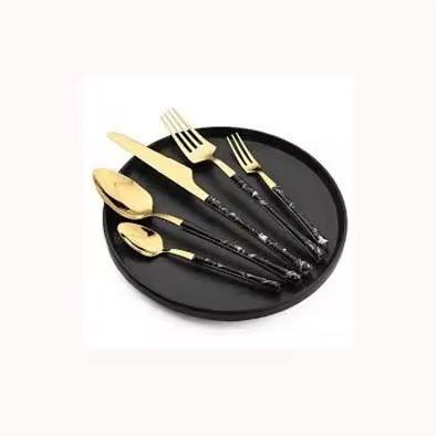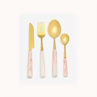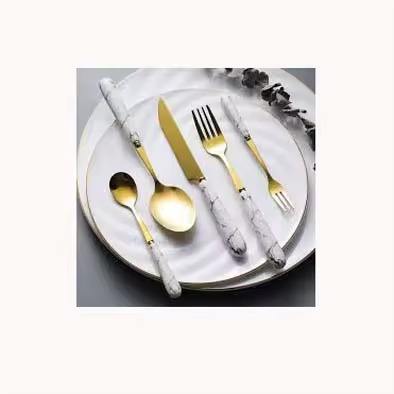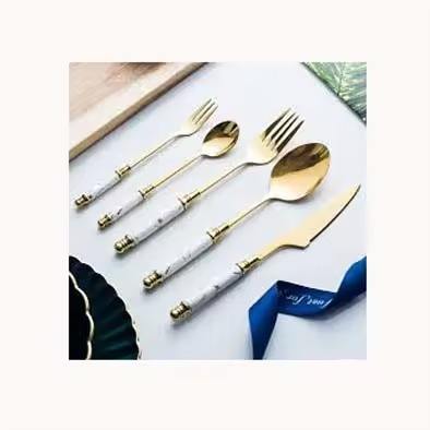 ชุดเครื่องใช้บนโต๊ะอาหารกระจกทองเหลืองขัดเงาหินอ่อนสุดสร้างสรรค์พร้อมที่จับฝาทองชุดมีดและช้อนส้อมออกแบบได้ตามต้องการ