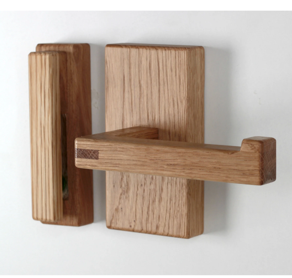 ที่ใส่กระดาษชำระแบบติดผนัง ทำจากทองเหลืองและไม้ รูปทรงสี่เหลี่ยม