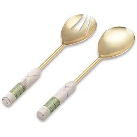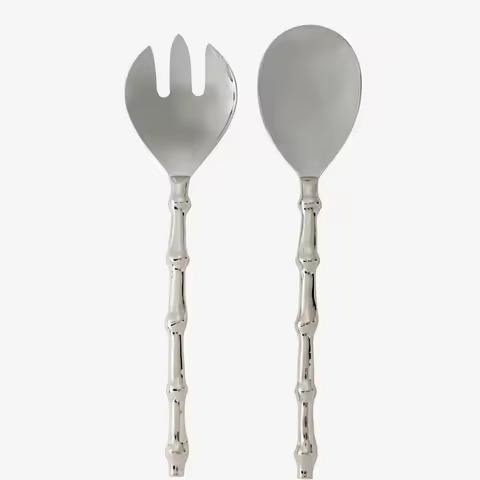 ชุดเสิร์ฟสลัดดีไซน์ไม้ไผ่ทองเหลืองชุบเงินสำหรับตกแต่งโต๊ะ