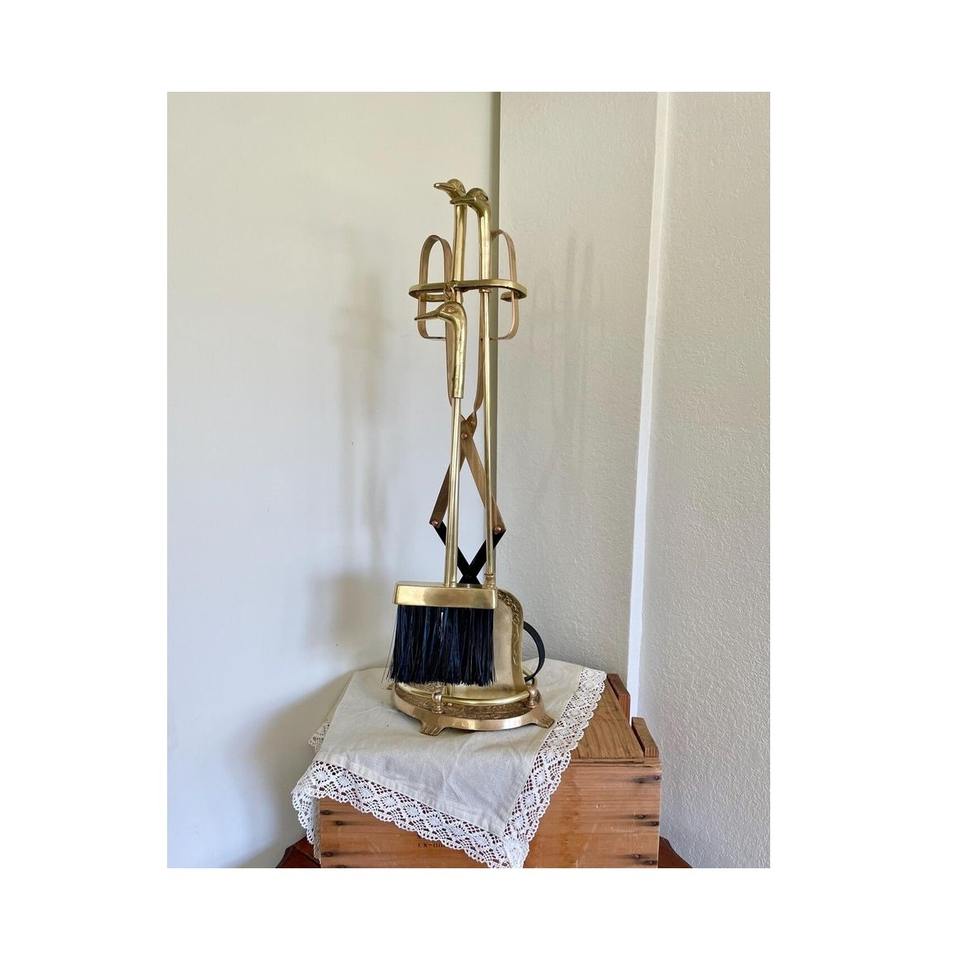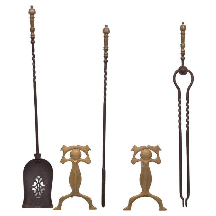 ชุดเครื่องมือดับเพลิงทองเหลืองพร้อมส่วนประกอบที่จำเป็นทั้งหมดและกรอบที่ทันสมัยทำขึ้นสำหรับห้องนั่งเล่นกลางหรือหรูหรา