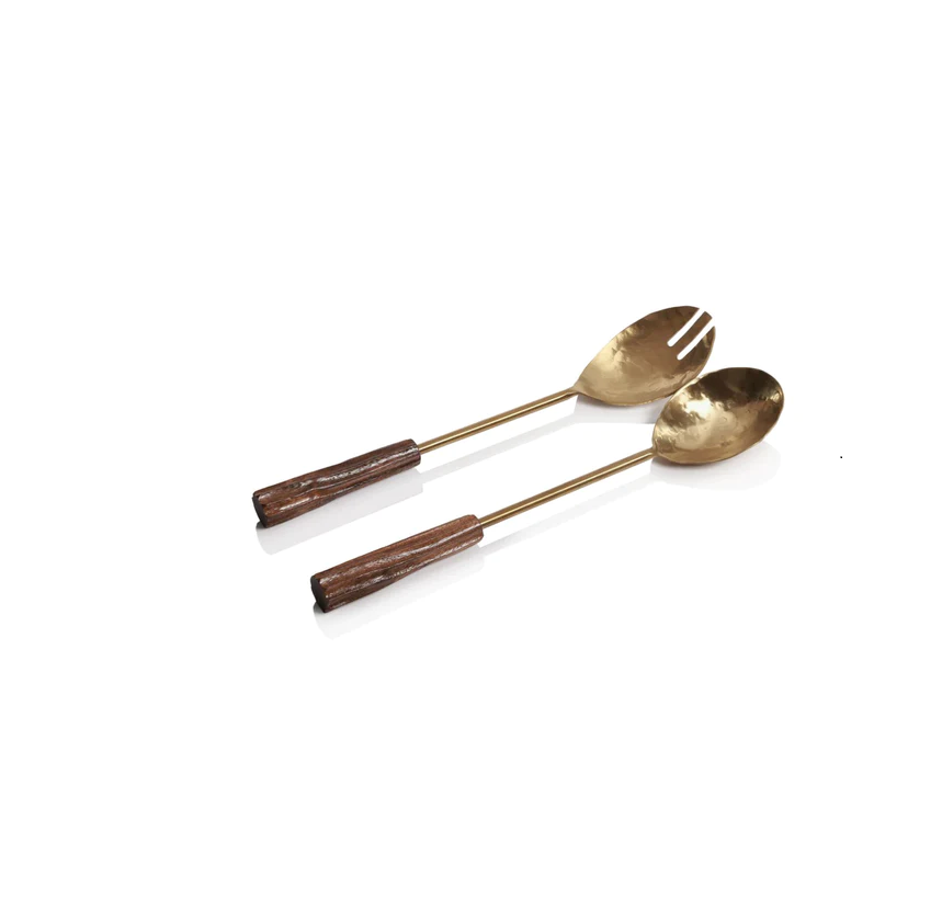 ช้อนสลัดทองเหลืองช้อนเสิร์ฟบุฟเฟ่ต์และที่จับไม้สําหรับร้านอาหารโรงแรมของขวัญออกแบบบนโต๊ะอาหารเครื่องครัว