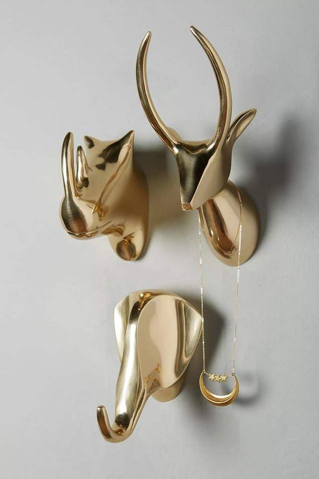 ตะขอแขวนผนังทองเหลือง ดีไซน์ตกแต่งห้องน้ำ ห้องครัว พื้นที่ขนาดเล็ก อุปกรณ์ตกแต่งแข็งแรง ทนทาน ติดผนัง จัดเก็บของใช้ในบ้าน อุปกรณ์จัดระเบียบผนัง