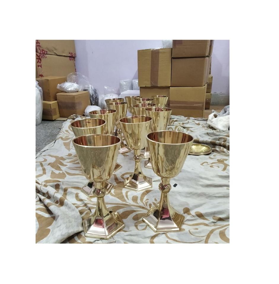 Brassworld อินเดียสไตล์คลาสสิกถ้วยขัดทองเหลืองรูปแบบทางศาสนาคริสตจักรโลโก้ที่กำหนดเองและพิมพ์ลายกากบาทสำหรับของขวัญ