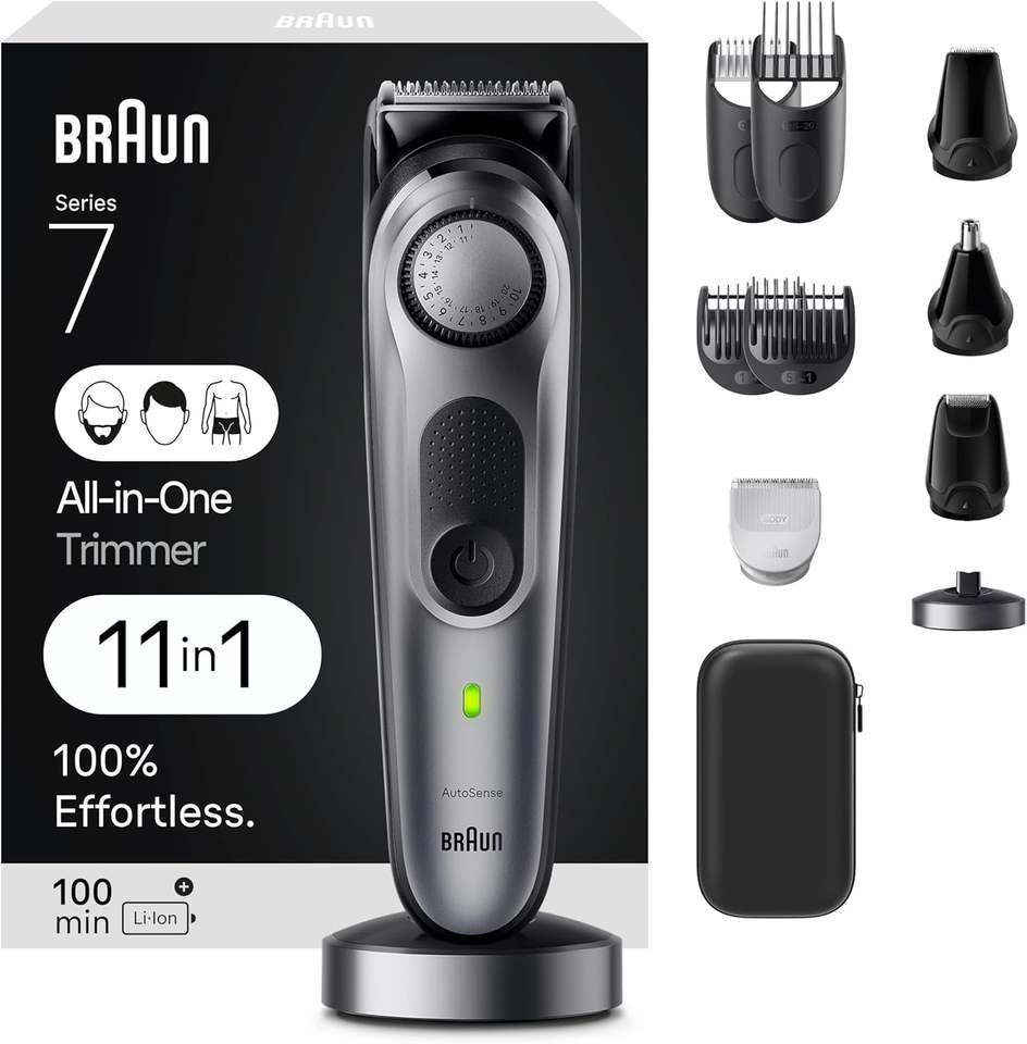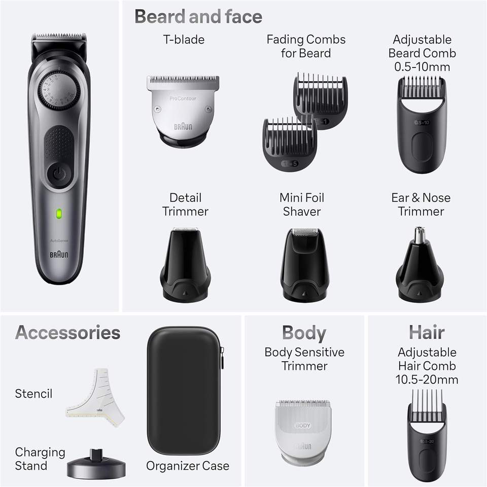 ชุดโกนหนวดออลอินวันสำหรับผู้ชาย บราวน์ ซีรีส์ 7 รุ่น 7420, เครื่องเล็มขน 11-in-1 สำหรับเครา จมูก หู, ปัตตาเลี่ยนตัดผม, เครื่องโกนขนตามร่างกาย, อุปกรณ์ดูแลขนสำหรับผู้ชาย