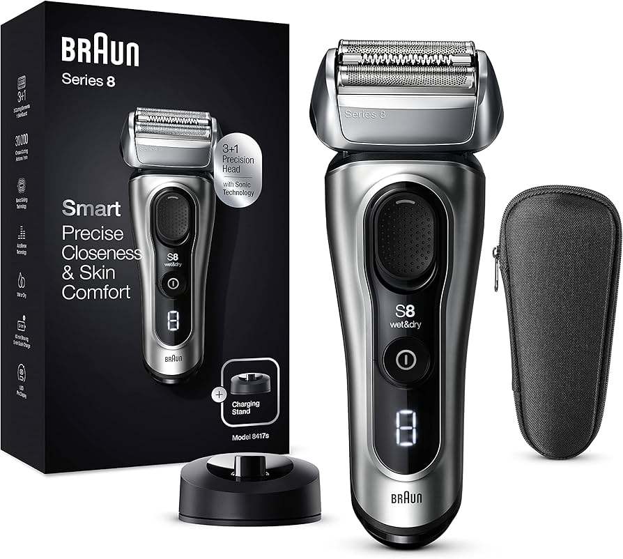 Braun เครื่องโกนหนวดไฟฟ้ารุ่น8แบบเปียก/แห้งพร้อม8370cc ทำความสะอาดเคสสำหรับเดินทาง