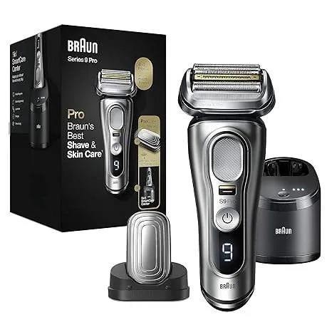 Braun ชุดที่9487cc 9 Pro ทั้งเปียกและแห้งมีดโกนไฟฟ้าชาร์จได้เครื่องโกนหนวดไฟฟ้าพร้อมสถานีทำความสะอาดและชาร์จไฟได้
