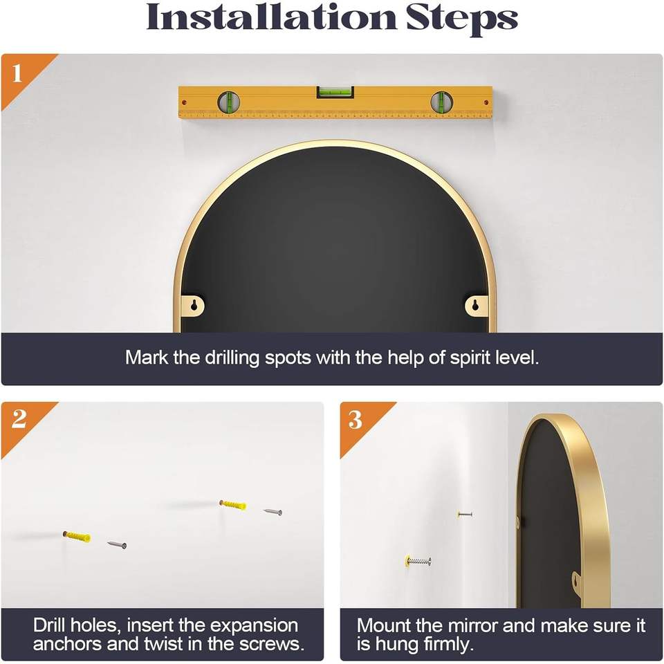 Brauthon กระจกห้องน้ำทรงโค้งสีทองขนาด22x30นิ้ว2แพ็ค22x30นิ้วกรอบโลหะสำหรับอ่างล้างหน้าหรือห้องนั่งเล่น