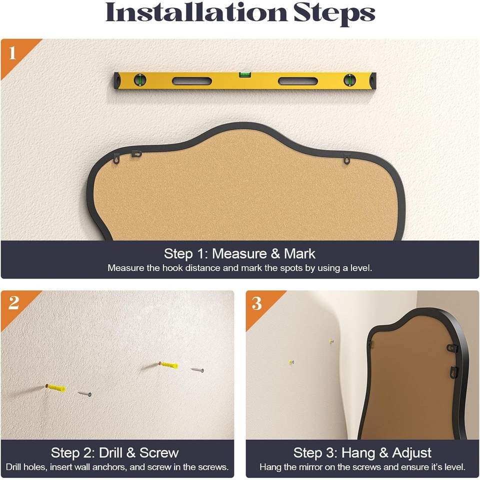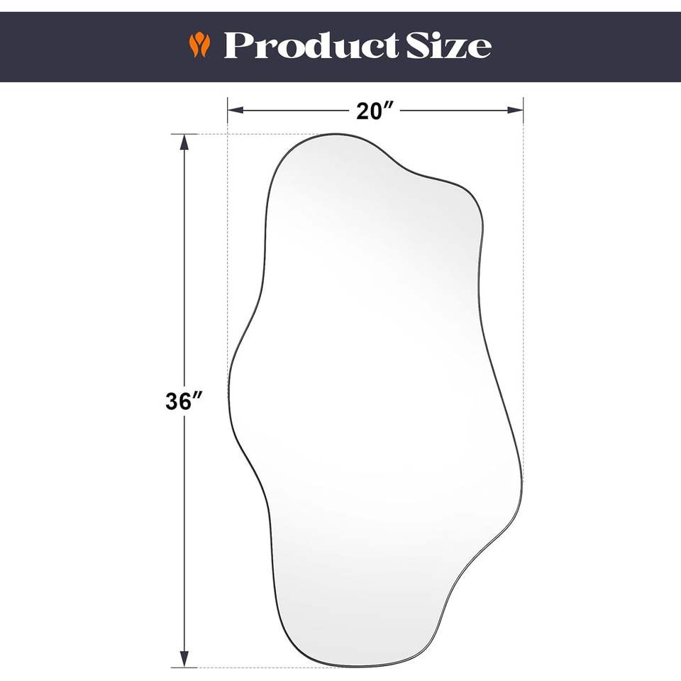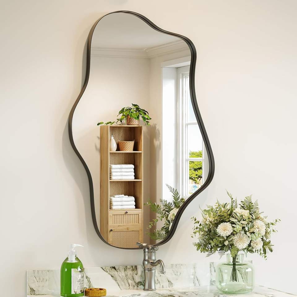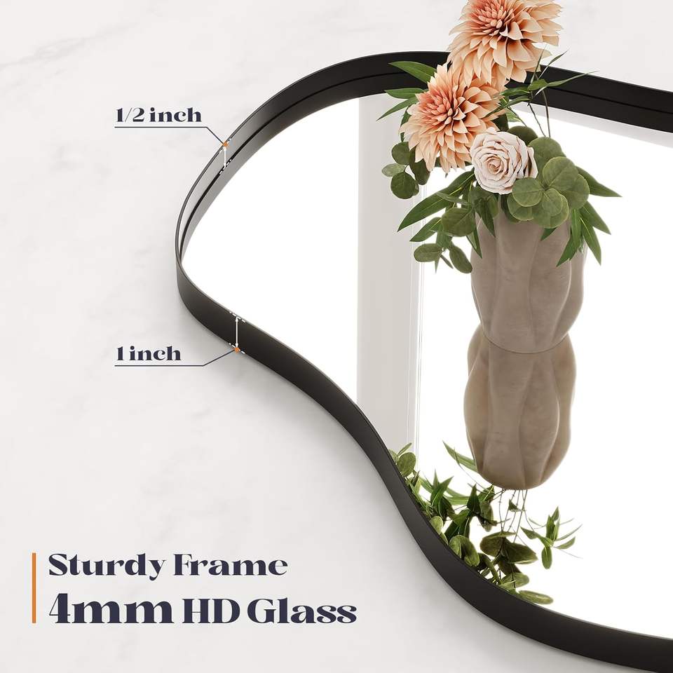 กระจกตกแต่งผนังทรงอสมมาตร Brauthon Modern ขนาด 20" x 36" สีดำ โลหะลายคลื่น รูปทรงไม่สม่ำเสมอ ติดผนัง