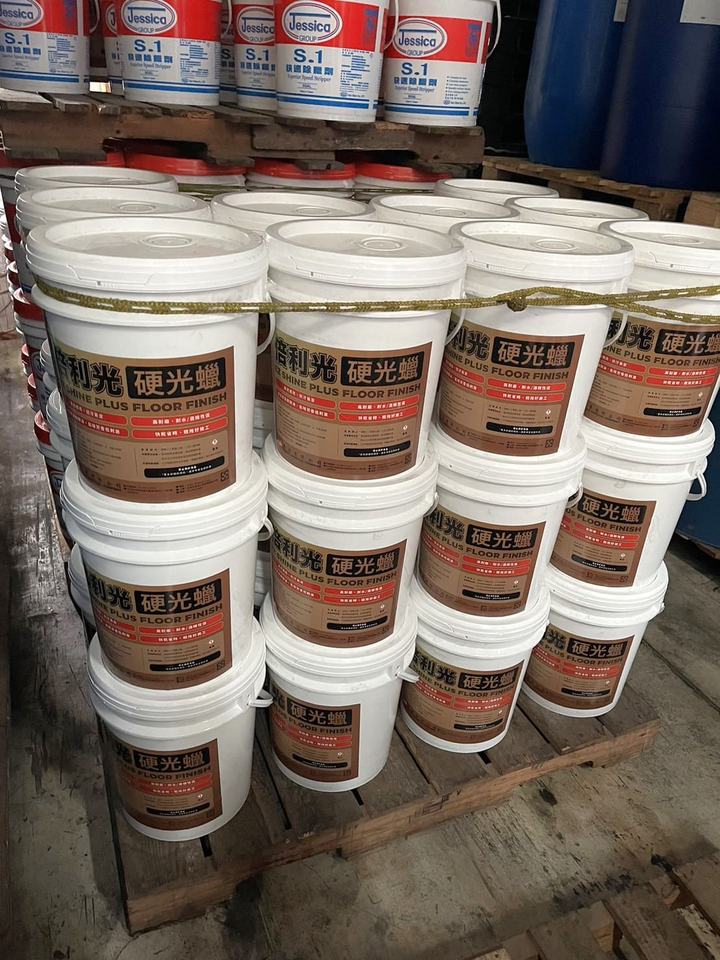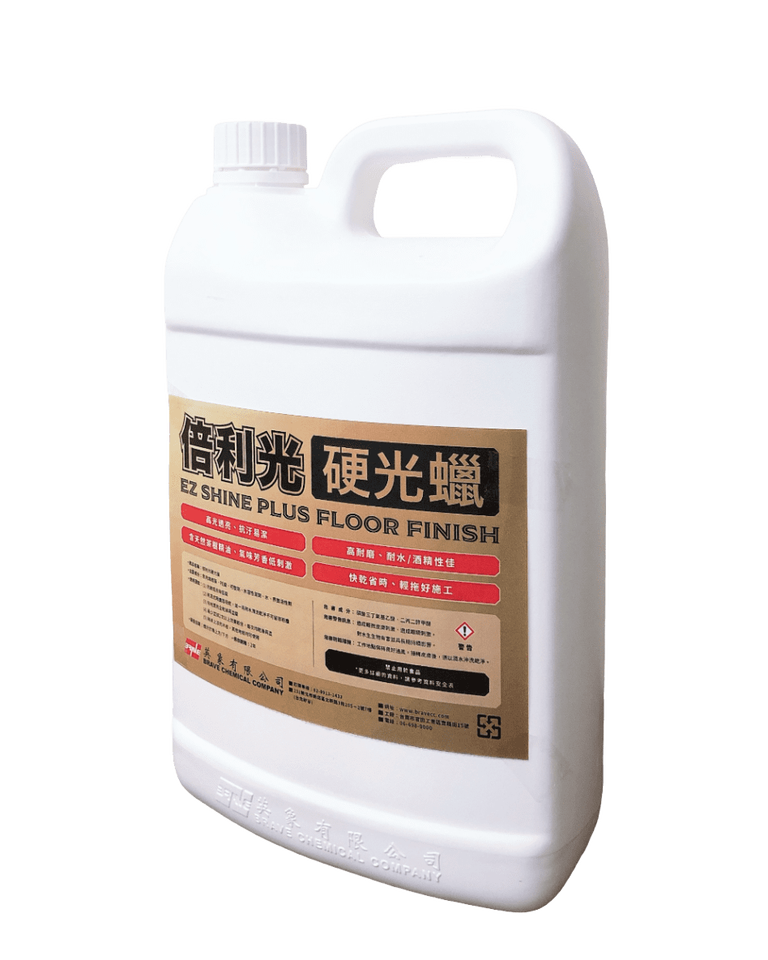 แว็กซ์เคลือบพื้นตกแต่งสูตรน้ำ แห้งเร็ว เป็นมิตรต่อสิ่งแวดล้อม ยี่ห้อ Brave Chemical รุ่น EZ Shine Plus ขนาด 5 แกลลอน 200 กิโลกรัม
