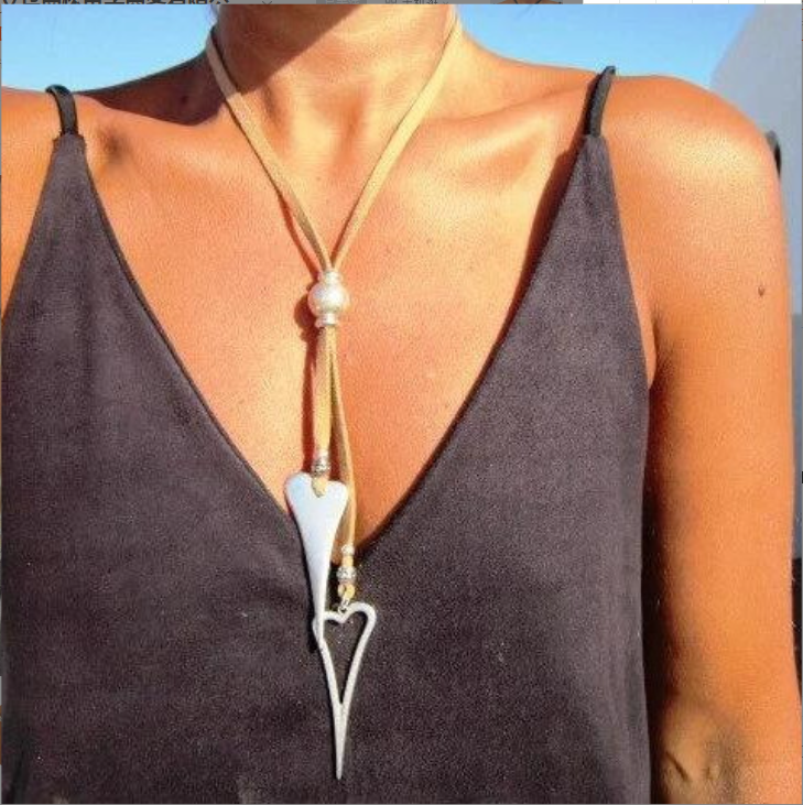 สร้อยคอรูปตัว Y แบบแหวนคู่กล้าหาญสร้อยคอเงินโบโฮหนังแบบใหม่สำหรับผู้หญิงผู้ชายเครื่องประดับจี้รูปใบช้าง