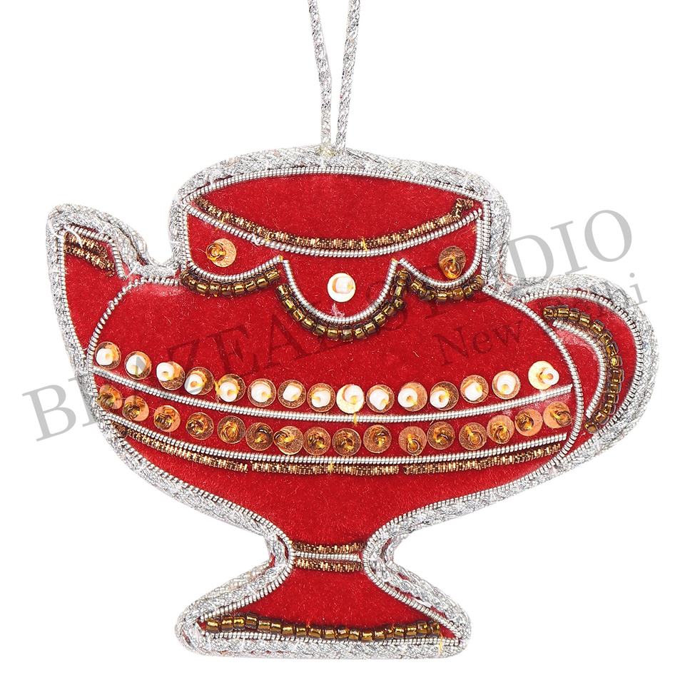 บรีซีล สตูดิโอ งานฝีมือทำมือ ของตกแต่งต้นคริสต์มาสแบบกำหนดเอง ผ้ากำมะหยี่ ผ้าซาติน ประดับลูกปัด ปักลายด้วยด้ายสีทอง ผลิตจากโรงงาน