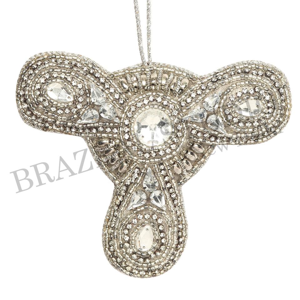 บราซีล สตูดิโอ งานแฮนด์เมด ผลิตภัณฑ์รักษ์โลก ผ้ากำมะหยี่ ผ้าซาติน ประดับลูกปัด ปักลาย ตกแต่งต้นคริสต์มาส ขนาด 4 นิ้ว 10 ซม. ผลิตตามสั่ง สีทอง จากโรงงาน