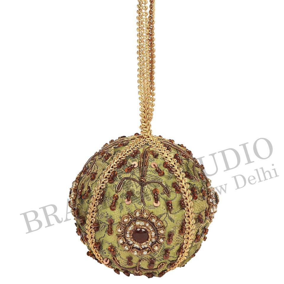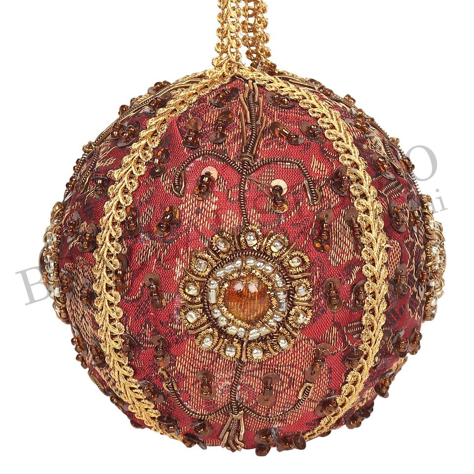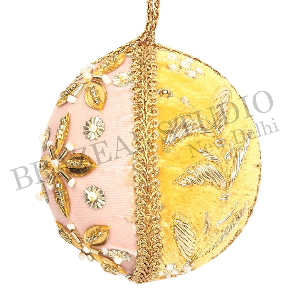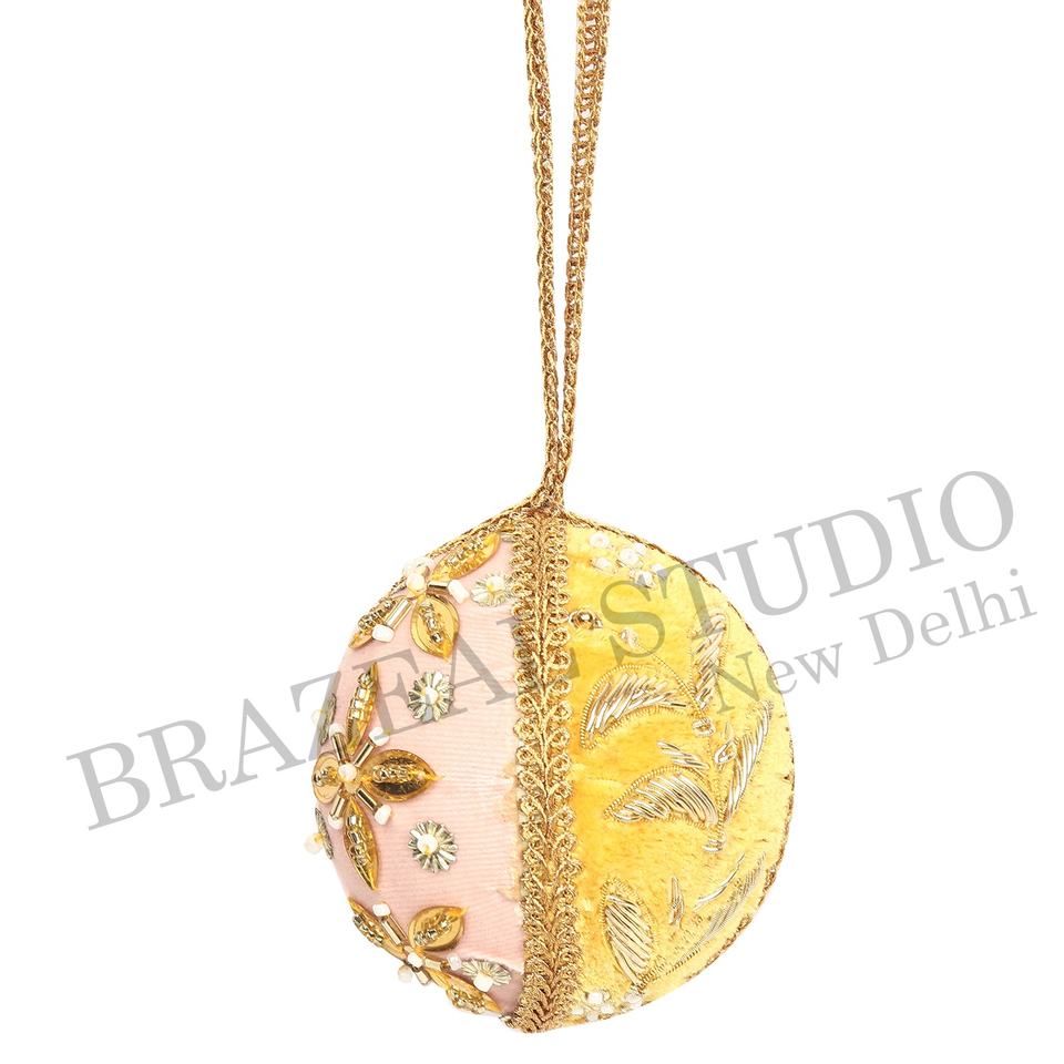 บราซีล สตูดิโอ งานแฮนด์เมด ผลิตภัณฑ์รักษ์โลก ผ้ากำมะหยี่ ผ้าซาติน ประดับลูกปัด ปักลาย ตกแต่งต้นคริสต์มาส ขนาด 4 นิ้ว 10 ซม. ผลิตตามสั่ง สีทอง จากโรงงาน